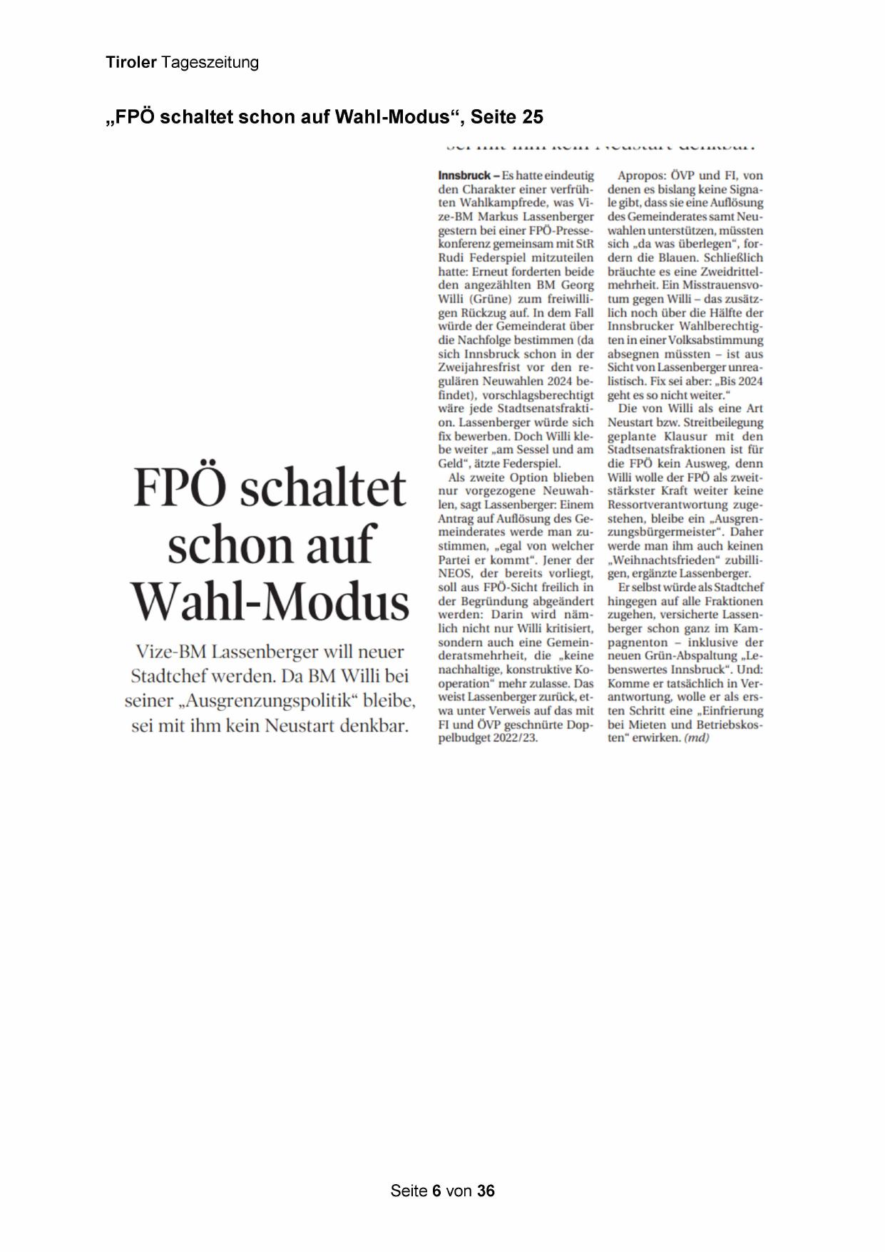 neuen Grün-Abspaltung „Lebenswertes Innsbruck“. Und:
