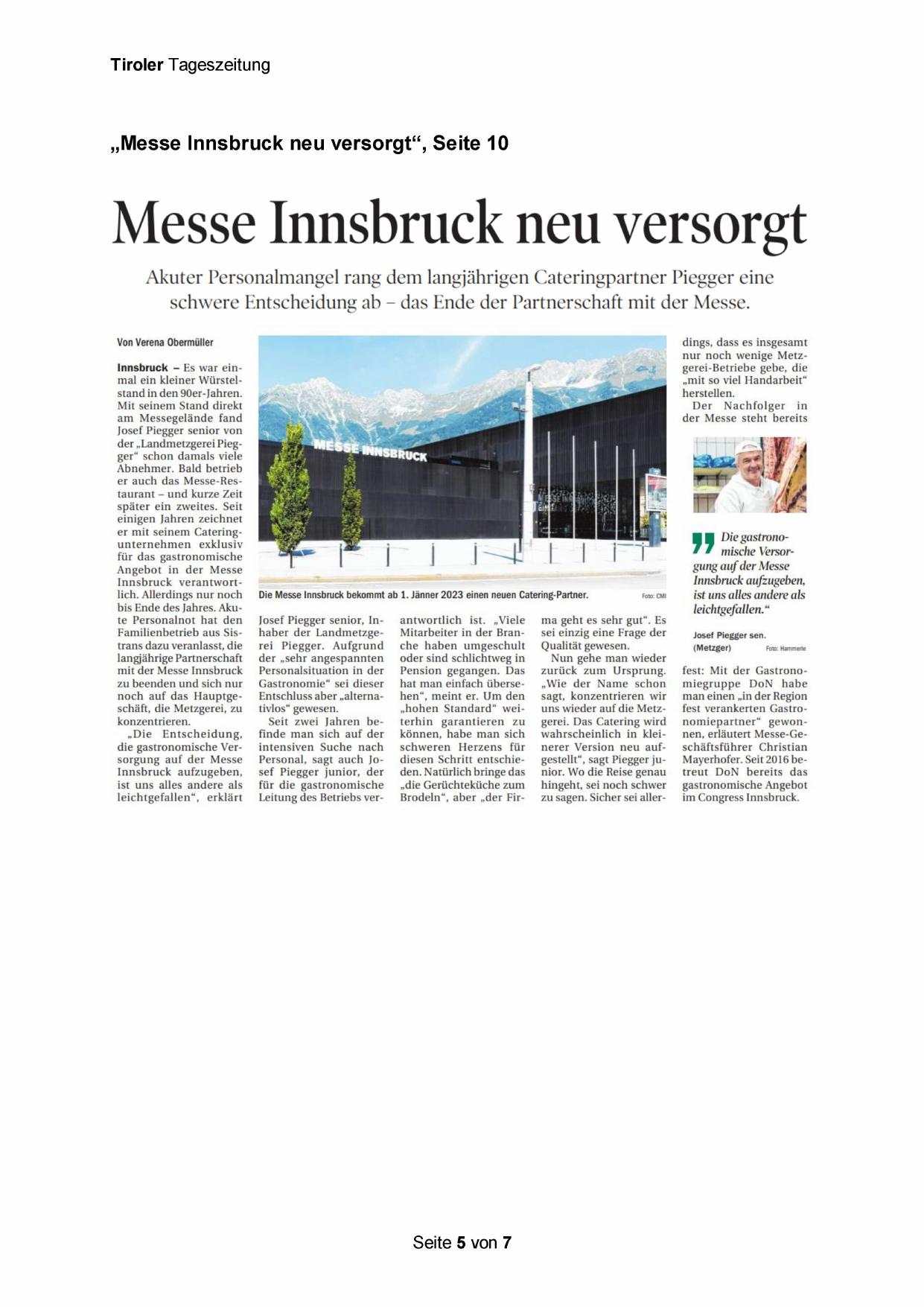 Die Messe Innsbruck bekommt ab 1. Jänner 2023 einen neuen Catering-Partner.