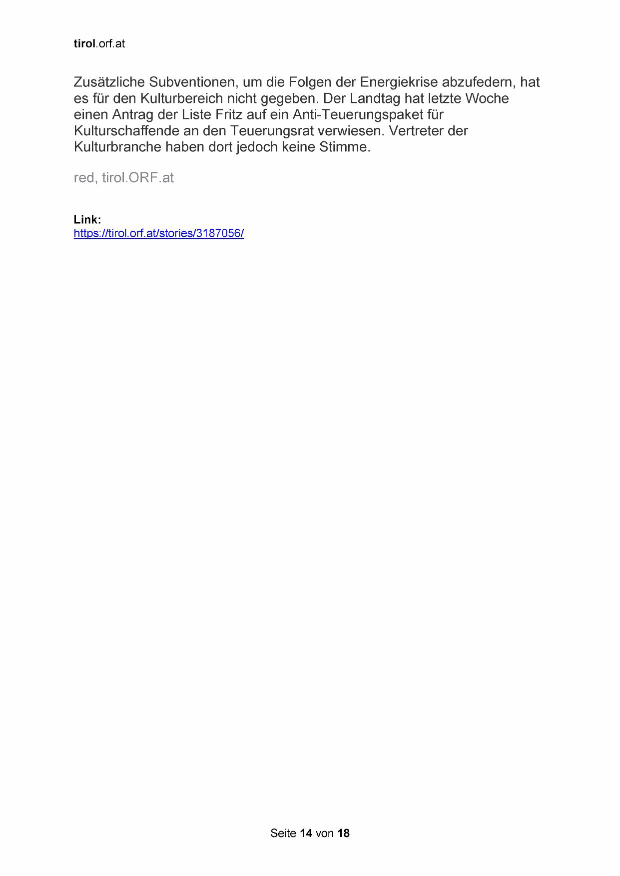 einen Antrag der Liste Fritz auf ein Anti-Teuerungspaket für