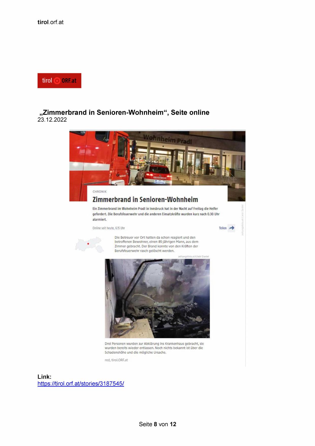 „Zimmerbrand in Senioren-Wohnheim“, Seite online