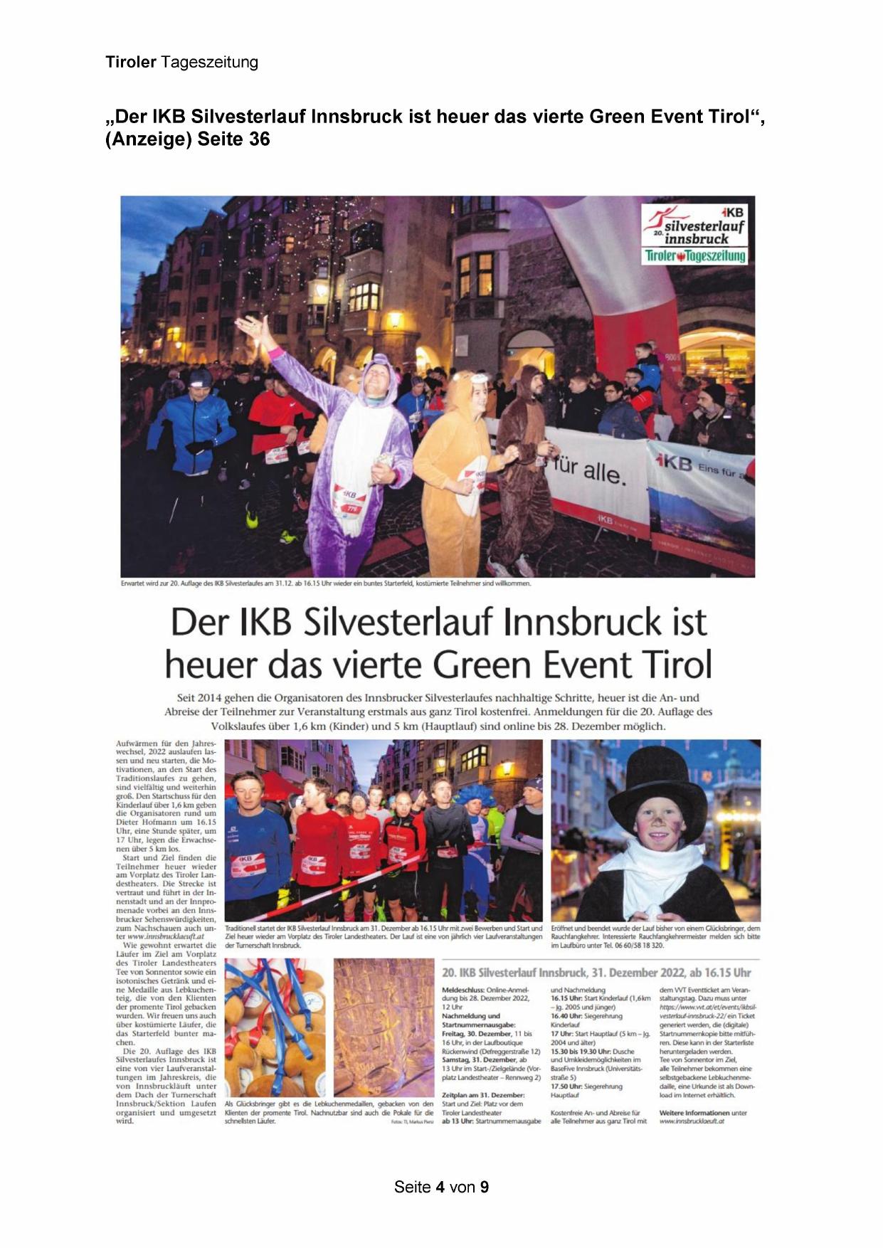 „Der IKB Silvesterlauf Innsbruck ist heuer das vierte Green Event Tirol“,
