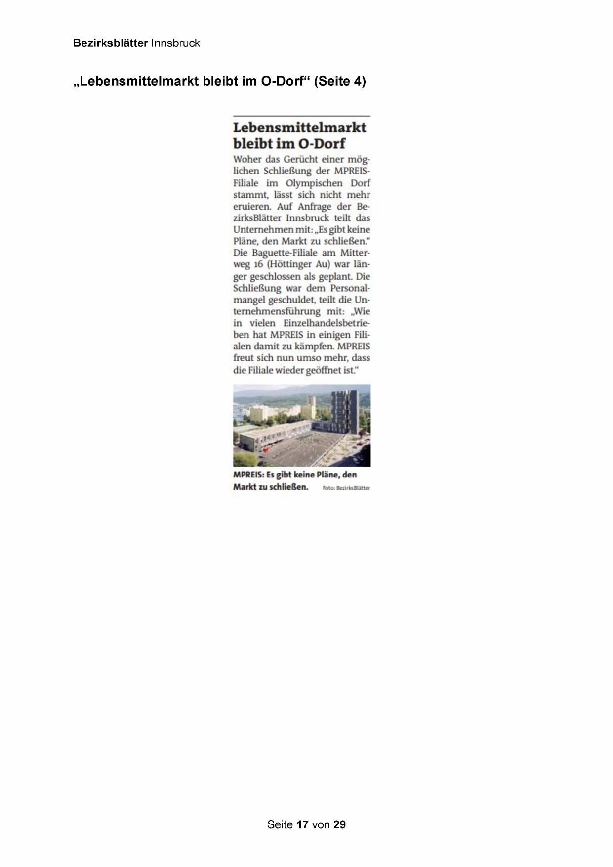 „Lebensmittelmarkt bleibt im O-Dorf“ (Seite 4)