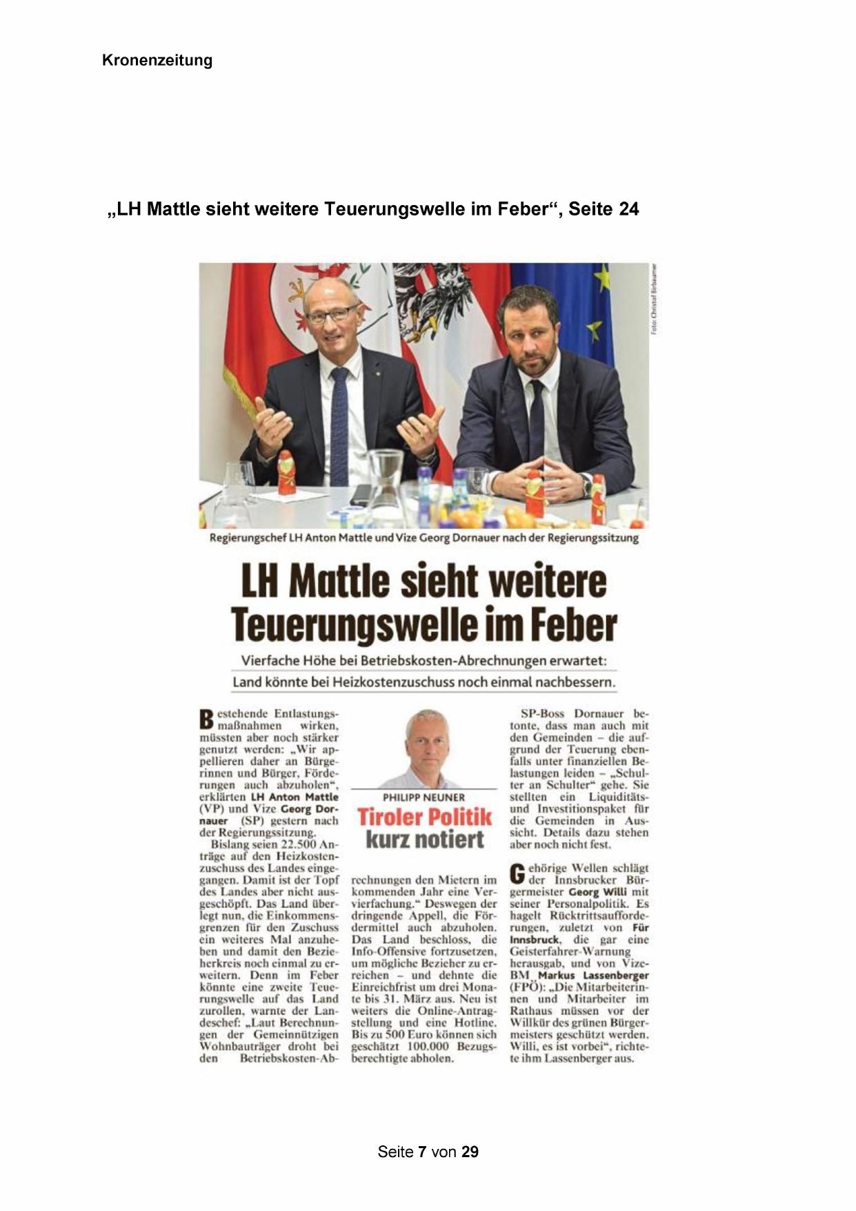 „LH Mattle sieht weitere Teuerungswelle im Feber“, Seite 24