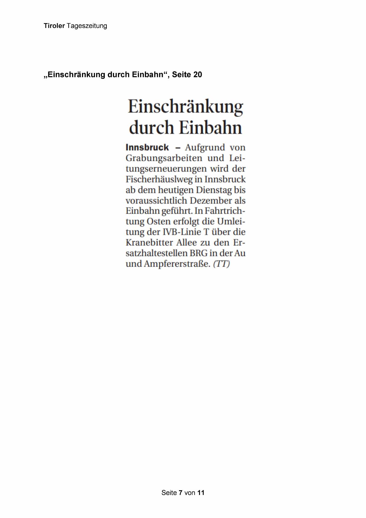 Einbahn geführt. In Fahrtrichtung Osten erfolgt die Umleitung der IVB-Linie T über die
