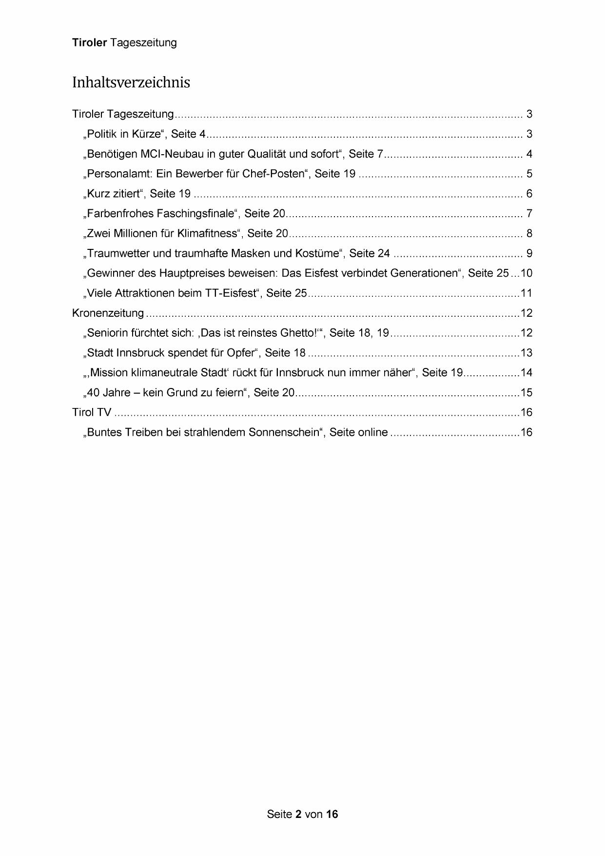 „‚Mission klimaneutrale Stadt‘ rückt für Innsbruck nun immer näher“, Seite 19.................. 14