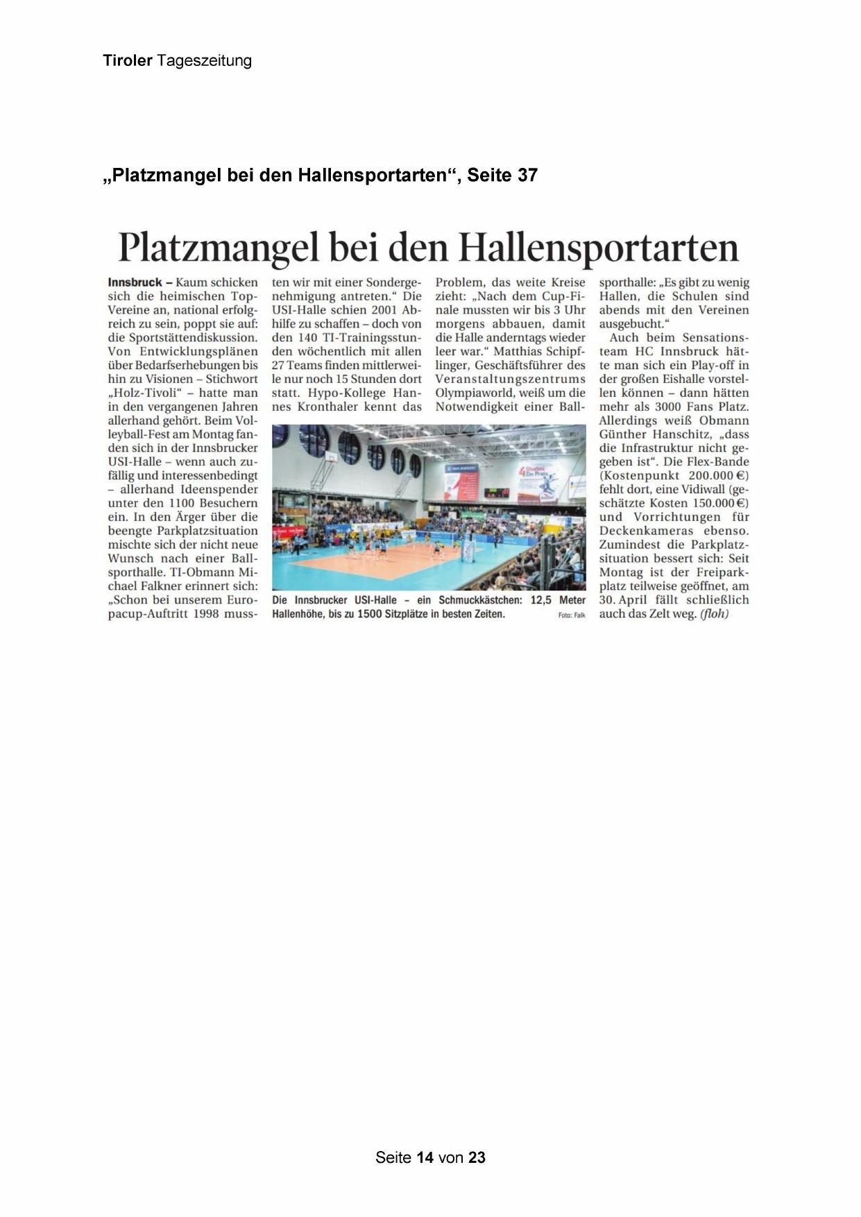 „Platzmangel bei den Hallensportarten“, Seite 37