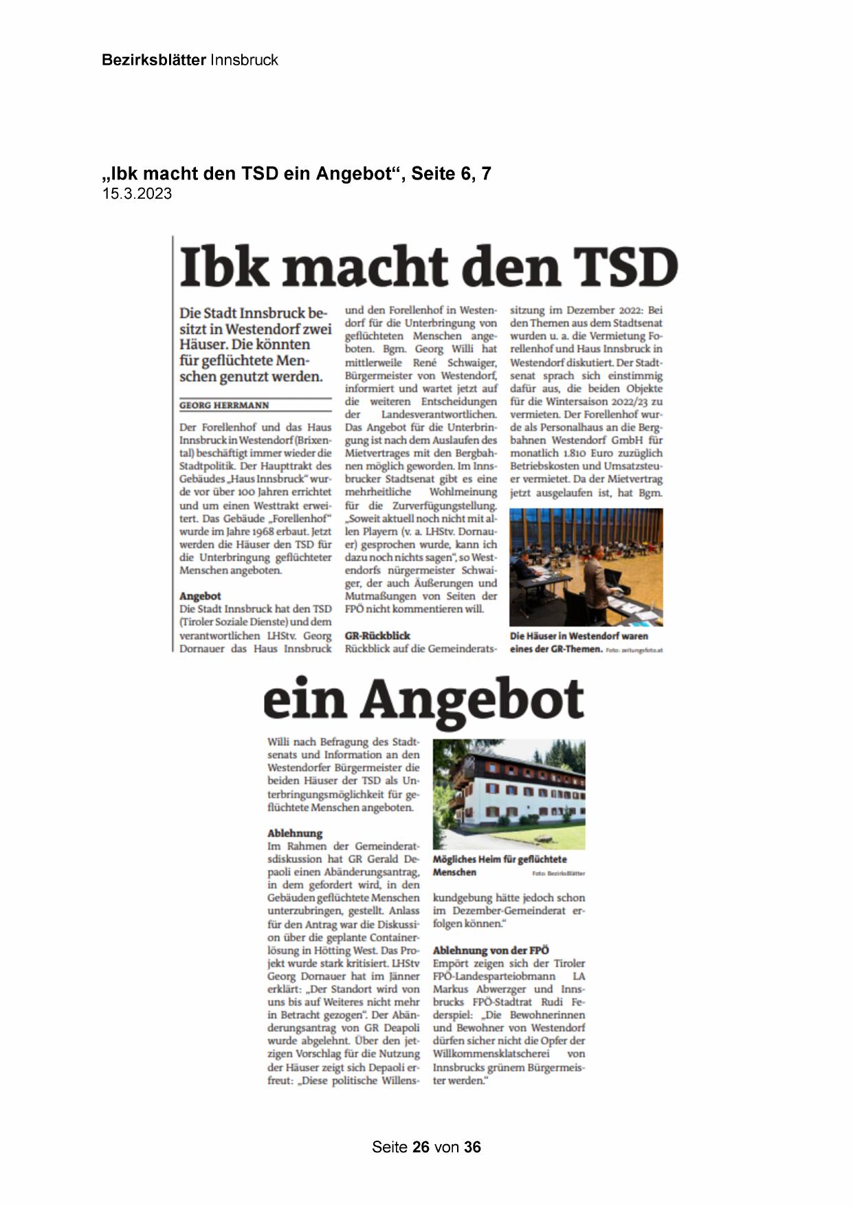„Ibk macht den TSD ein Angebot“, Seite 6, 7