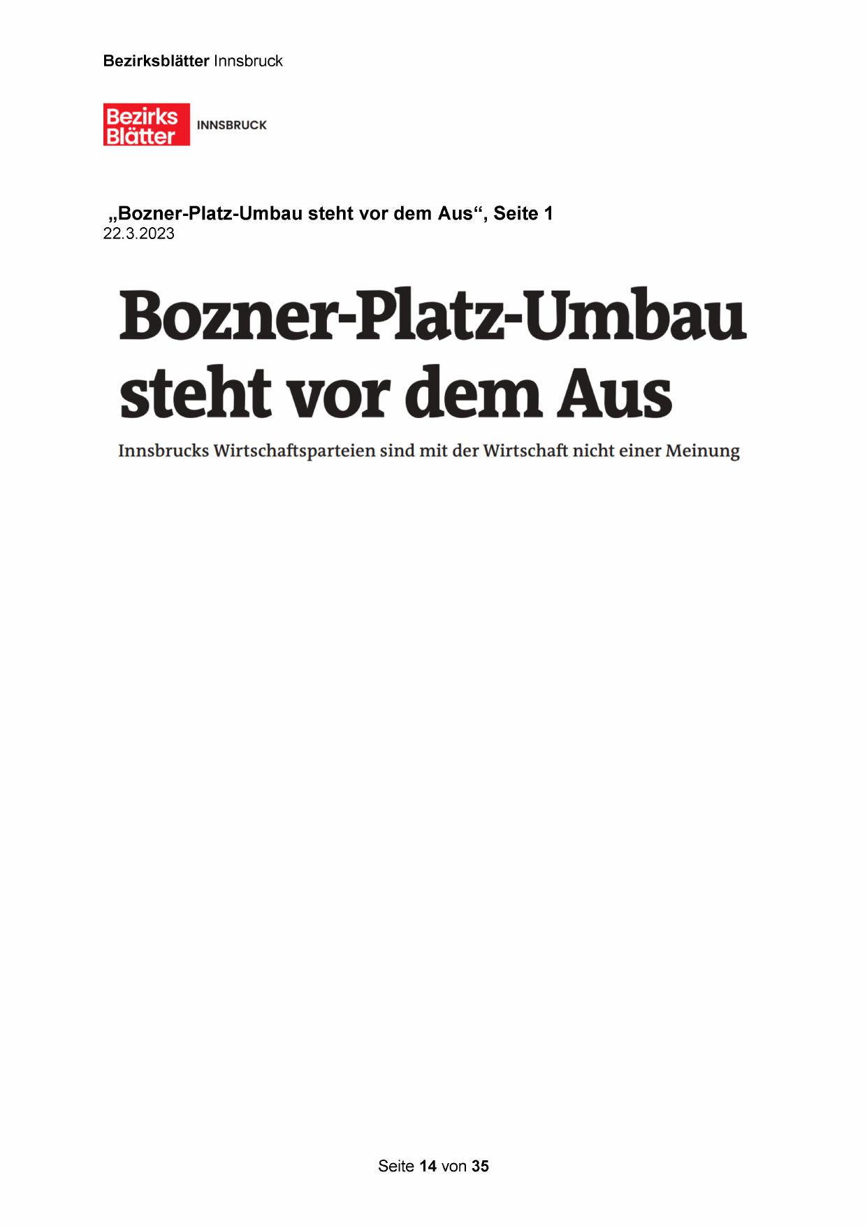 „Bozner-Platz-Umbau steht vor dem Aus“, Seite 1