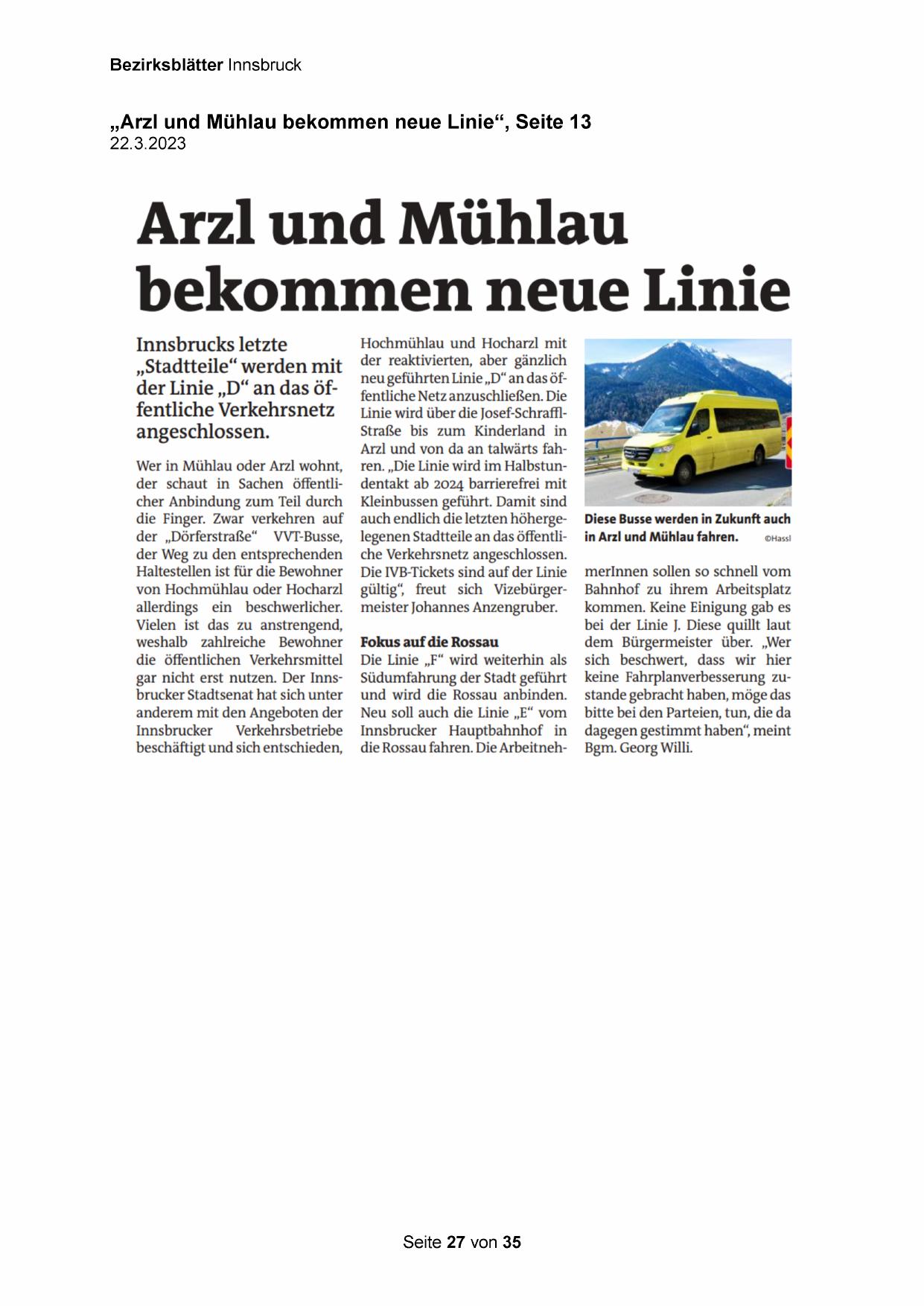„Arzil und Mühlau bekommen neue Linie“, Seite 13