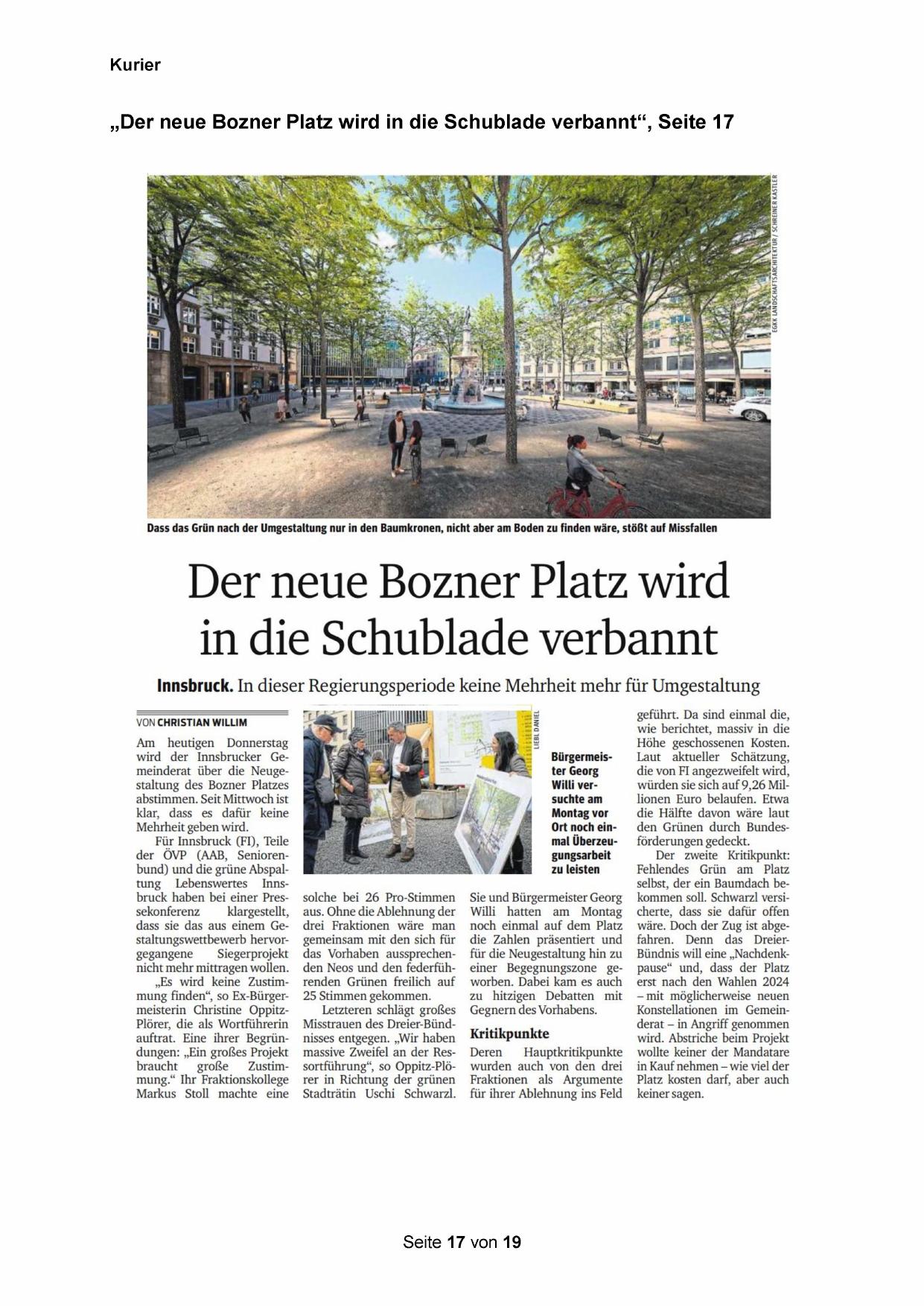 „Der neue Bozner Platz wird in die Schublade verbannt‘“, Seite 17