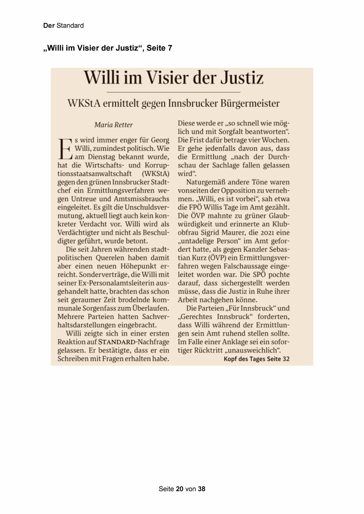 gegen den grünen Innsbrucker Stadtchef ein Ermittlungsverfahren wegen Untreue und Amtsmissbrauchs