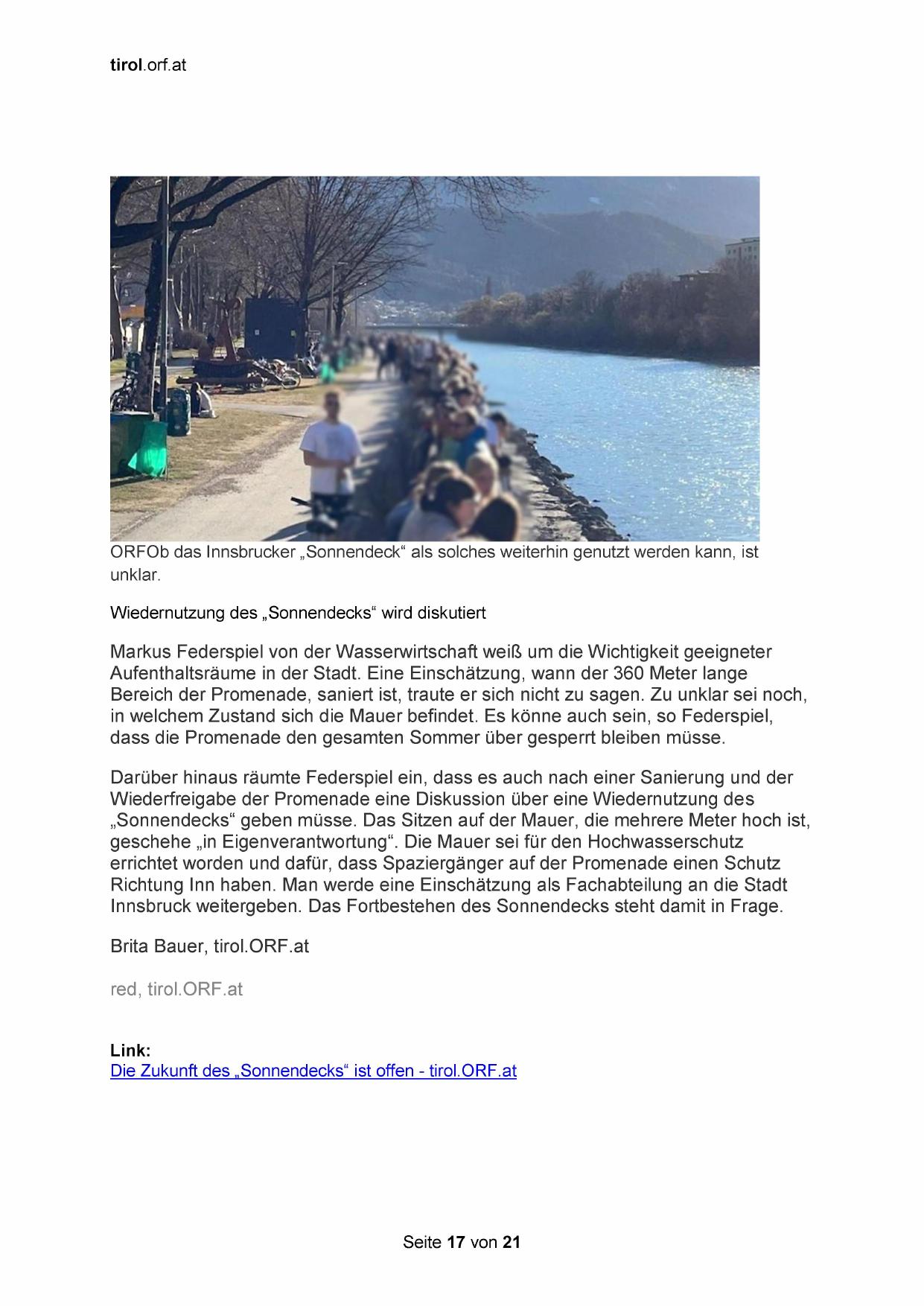 Innsbruck weitergeben. Das Fortbestehen des Sonnendecks steht damit in Frage.