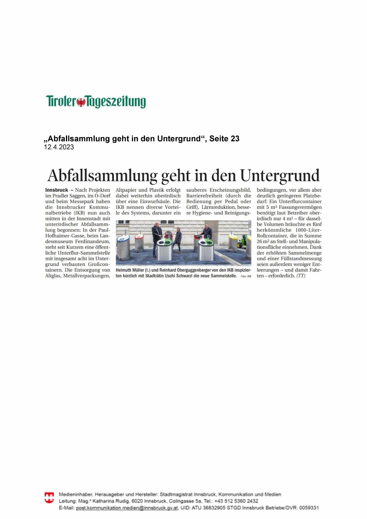 E-Mail: post.kommunikation.medien@innsbruck.gv.at, UID: ATU 36832905 STGD Innsbruck Betriebe/DVR: 0059331