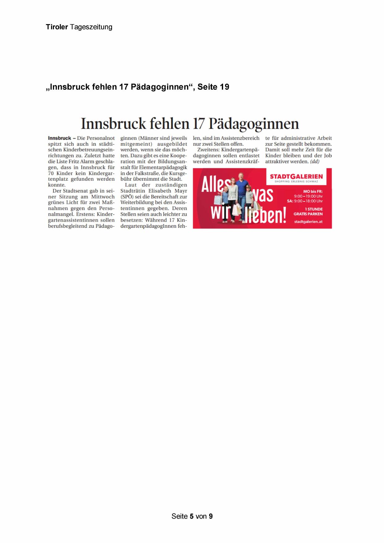 „Innsbruck fehlen 17 Pädagoginnen“, Seite 19