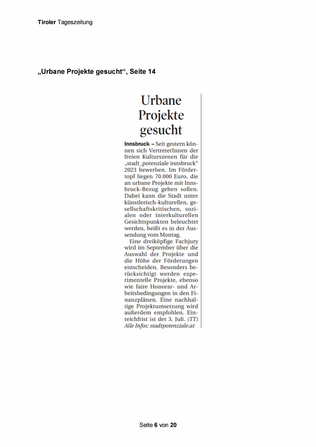 an urbane Projekte mit Innsbruck-Bezug gehen sollen.