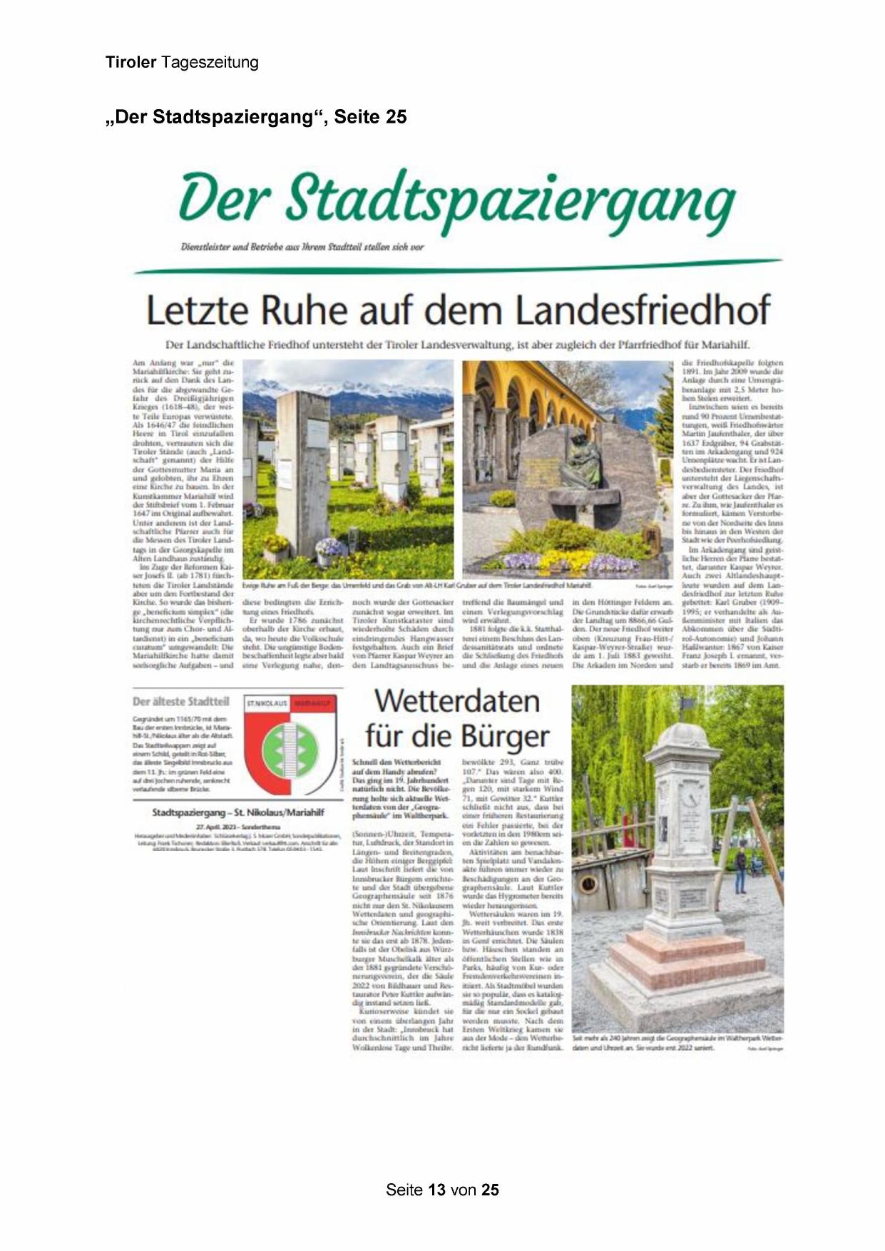 Der Landschaftliche Friedhof untersteht der Tiroler Landesverwaltung, ist aber zugleich der Marrfriedhof für Mariahilf.