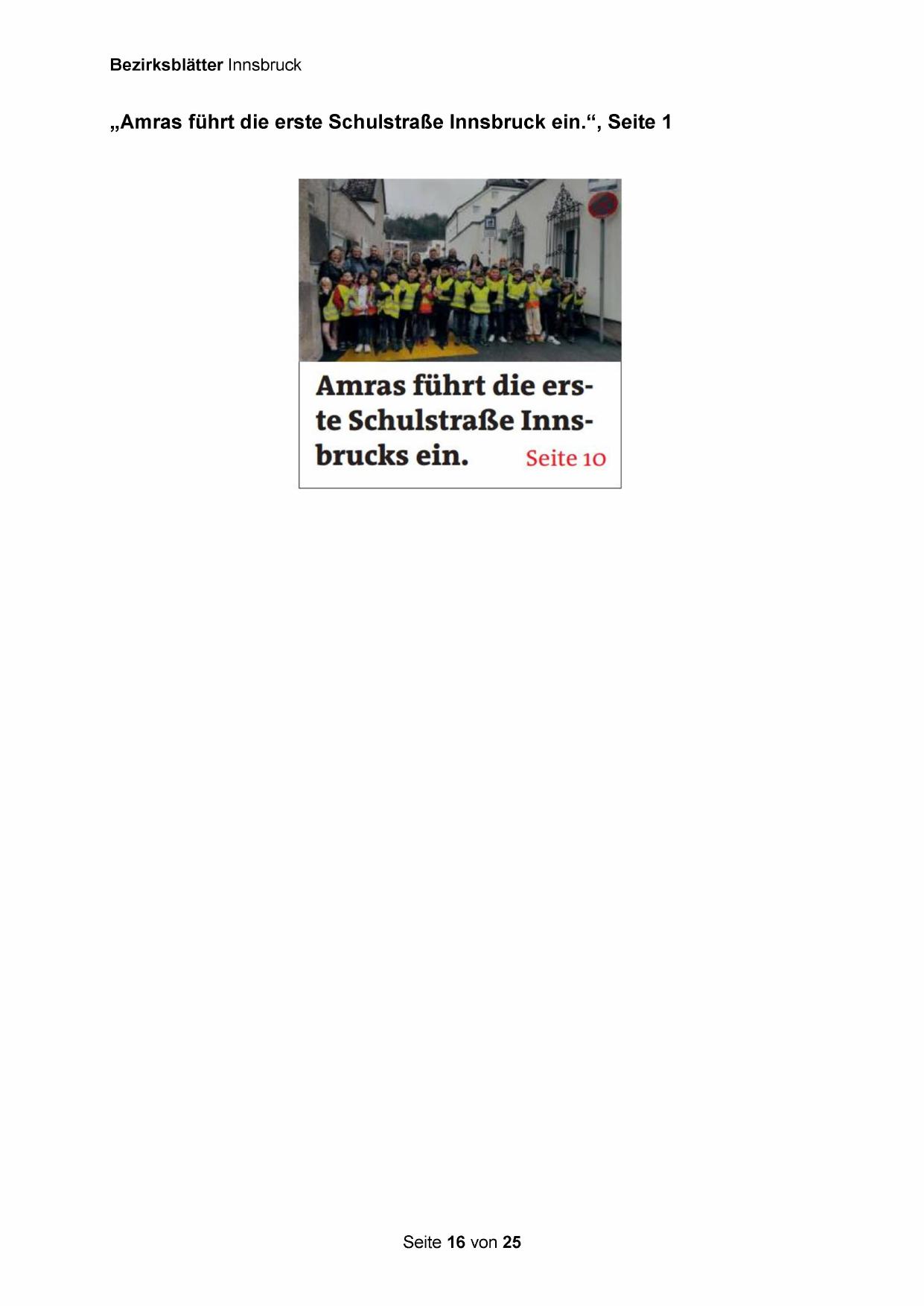 „Amras führt die erste Schulstraße Innsbruck ein.“, Seite 1