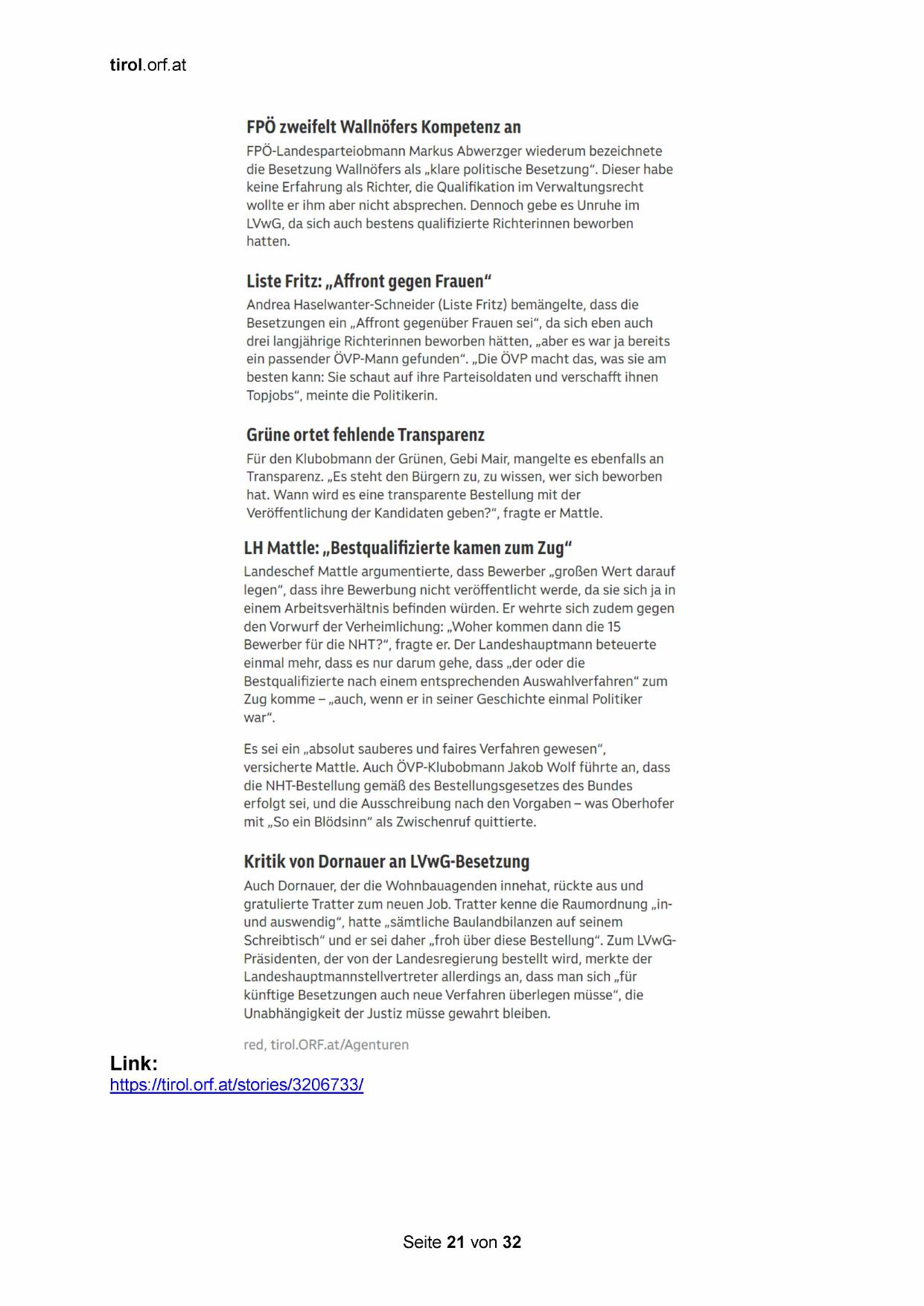 die Besetzung Wallnöfers als „klare politische Besetzung“. Dieser habe