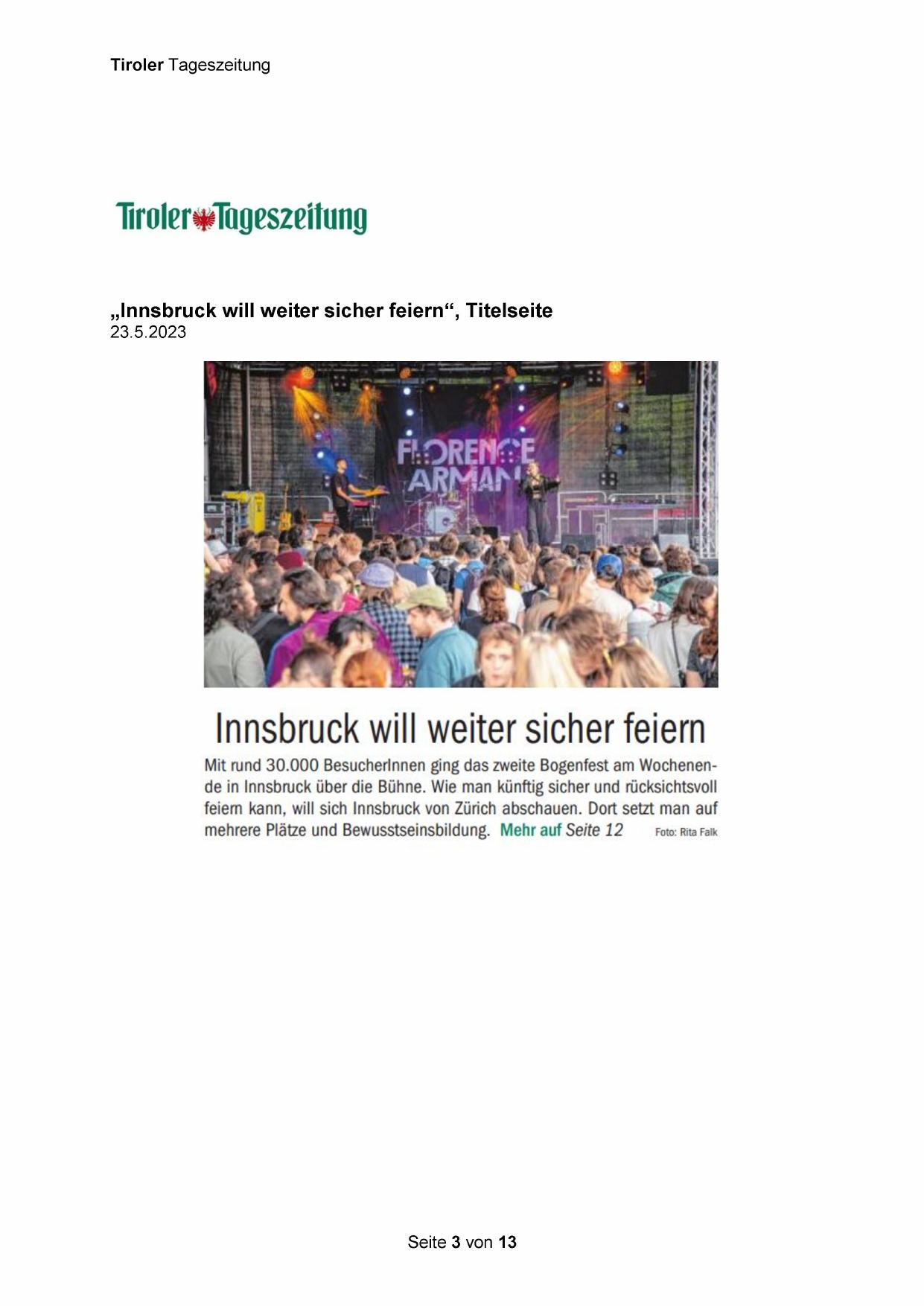 „Innsbruck will weiter sicher feiern“, Titelseite