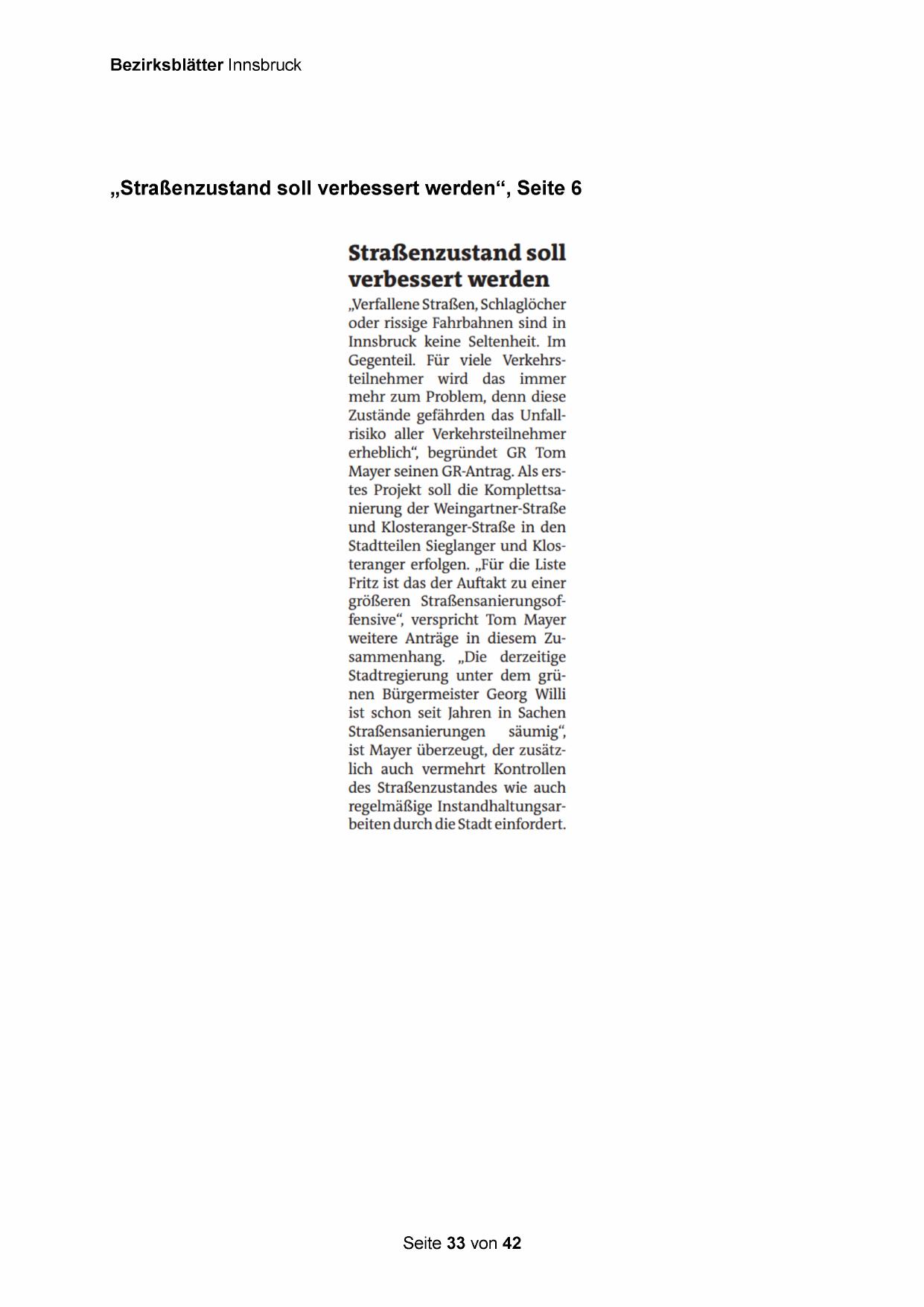 Mayer seinen GR-Antrag. Als erstes Projekt soll die Komplettsanierung der Weingartner-Straße
