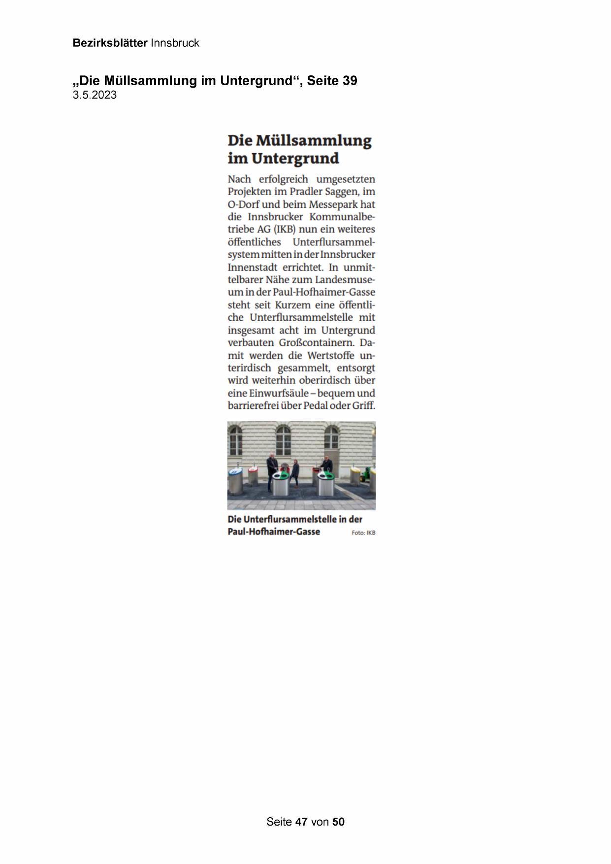 öffentliches Unterflursammelsystem mitten in der Innsbrucker