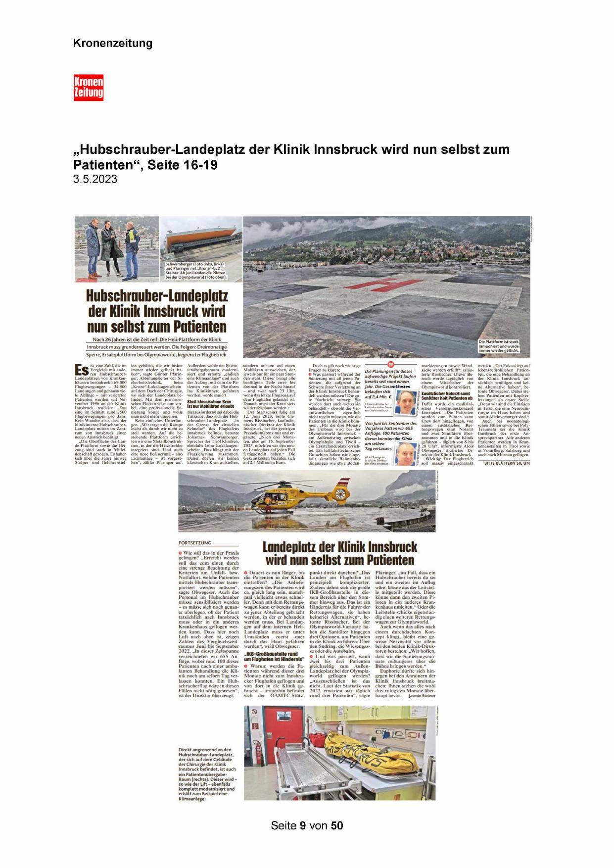 „Hubschrauber-Landeplatz der Klinik Innsbruck wird nun selbst zum