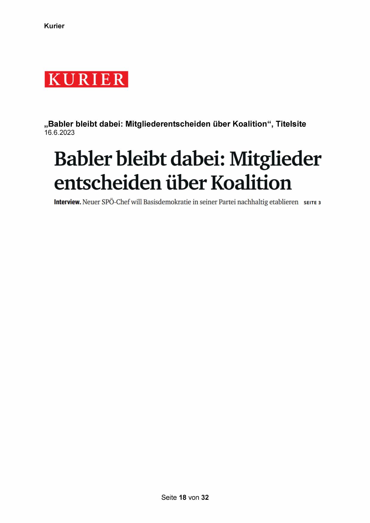 „Babler bleibt dabei: Mitgliederentscheiden über Koalition“, Titelsite