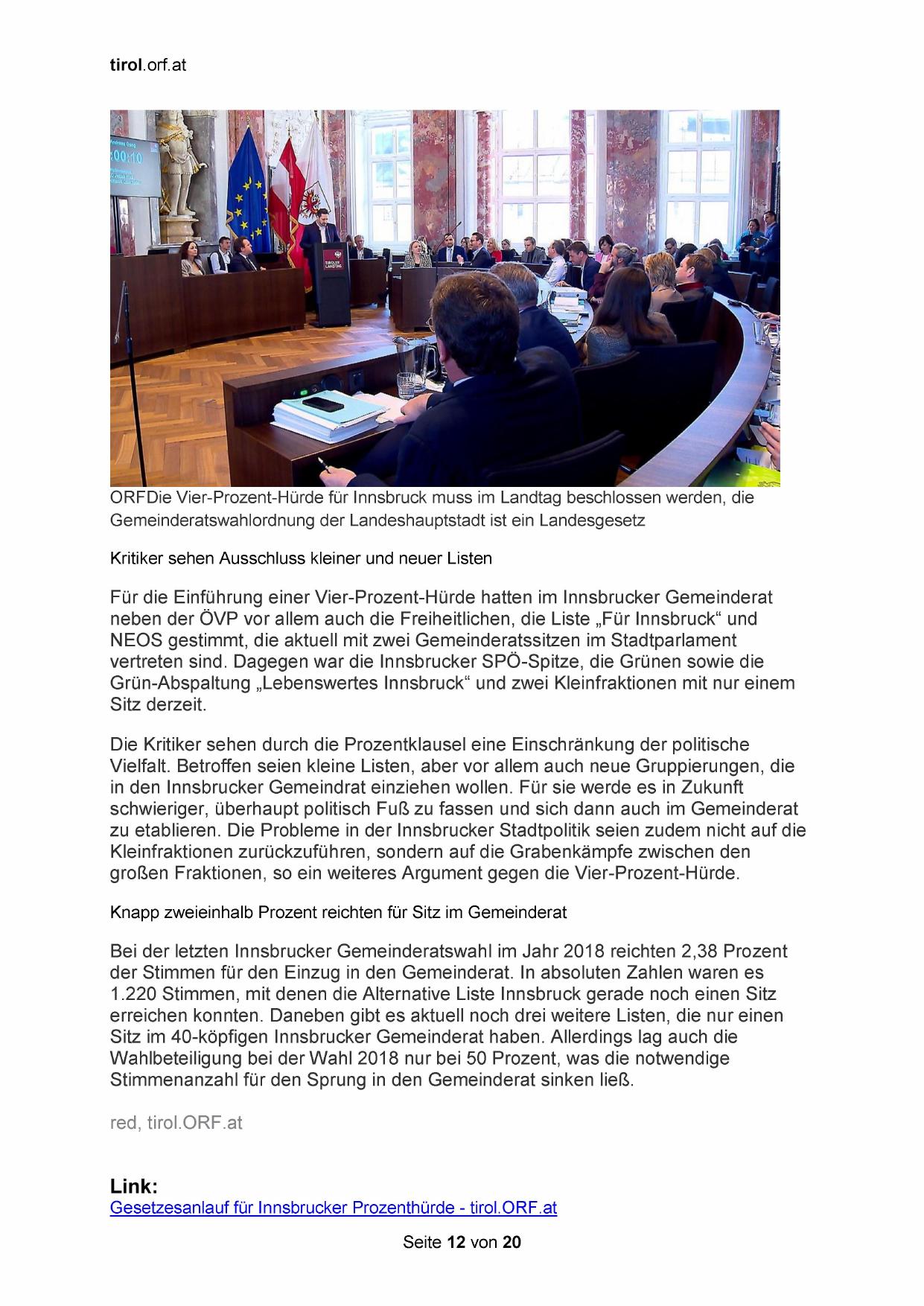 ORFDie Vier-Prozent-Hürde für Innsbruck muss im Landtag beschlosse weden‚ die