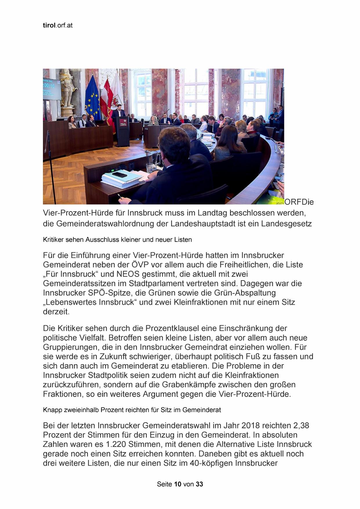 Innsbrucker Stadtpolitik seien zudem nicht auf die Kleinfraktionen