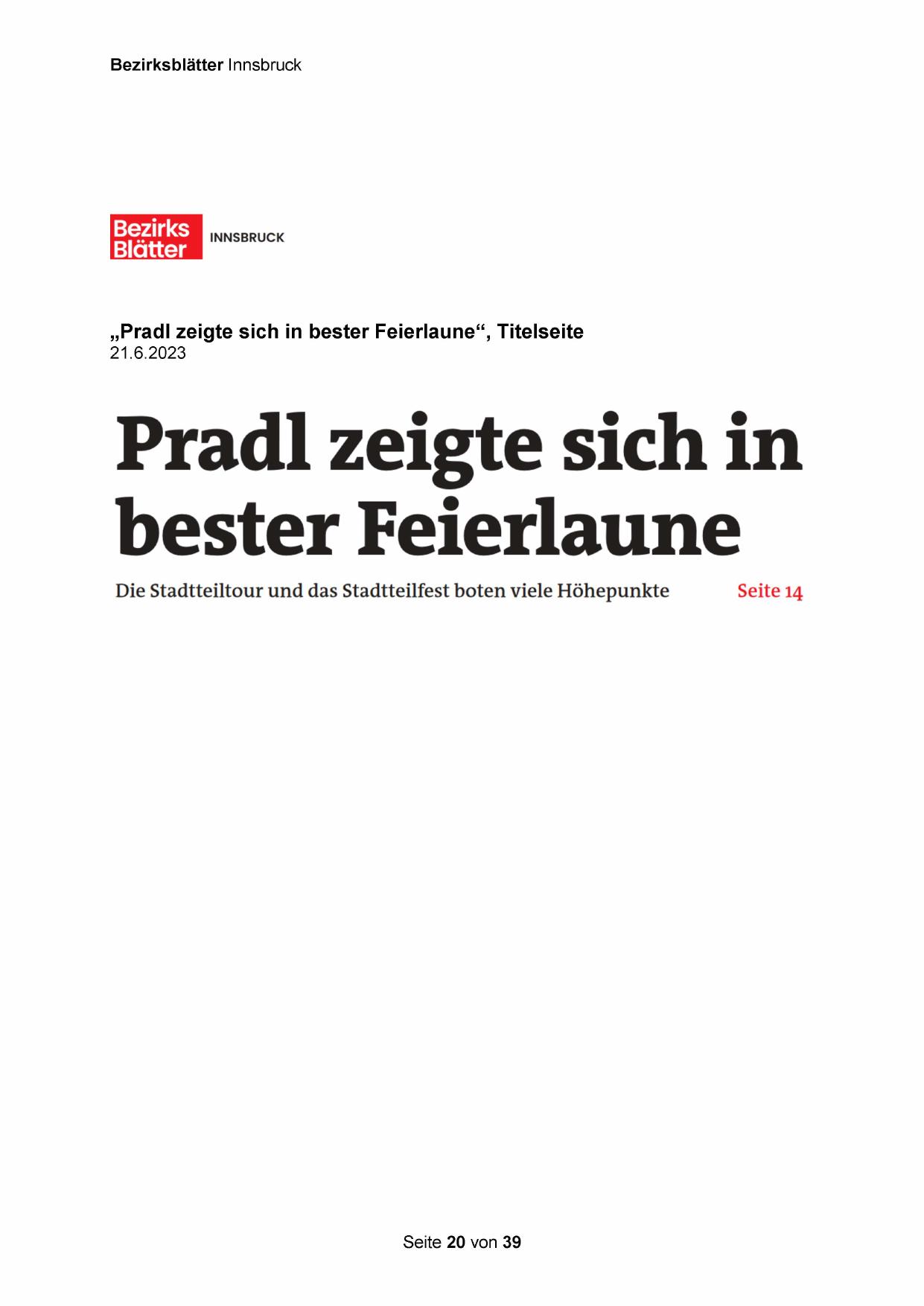 „Pradli zeigte sich in bester Feierlaune“, Titelseite