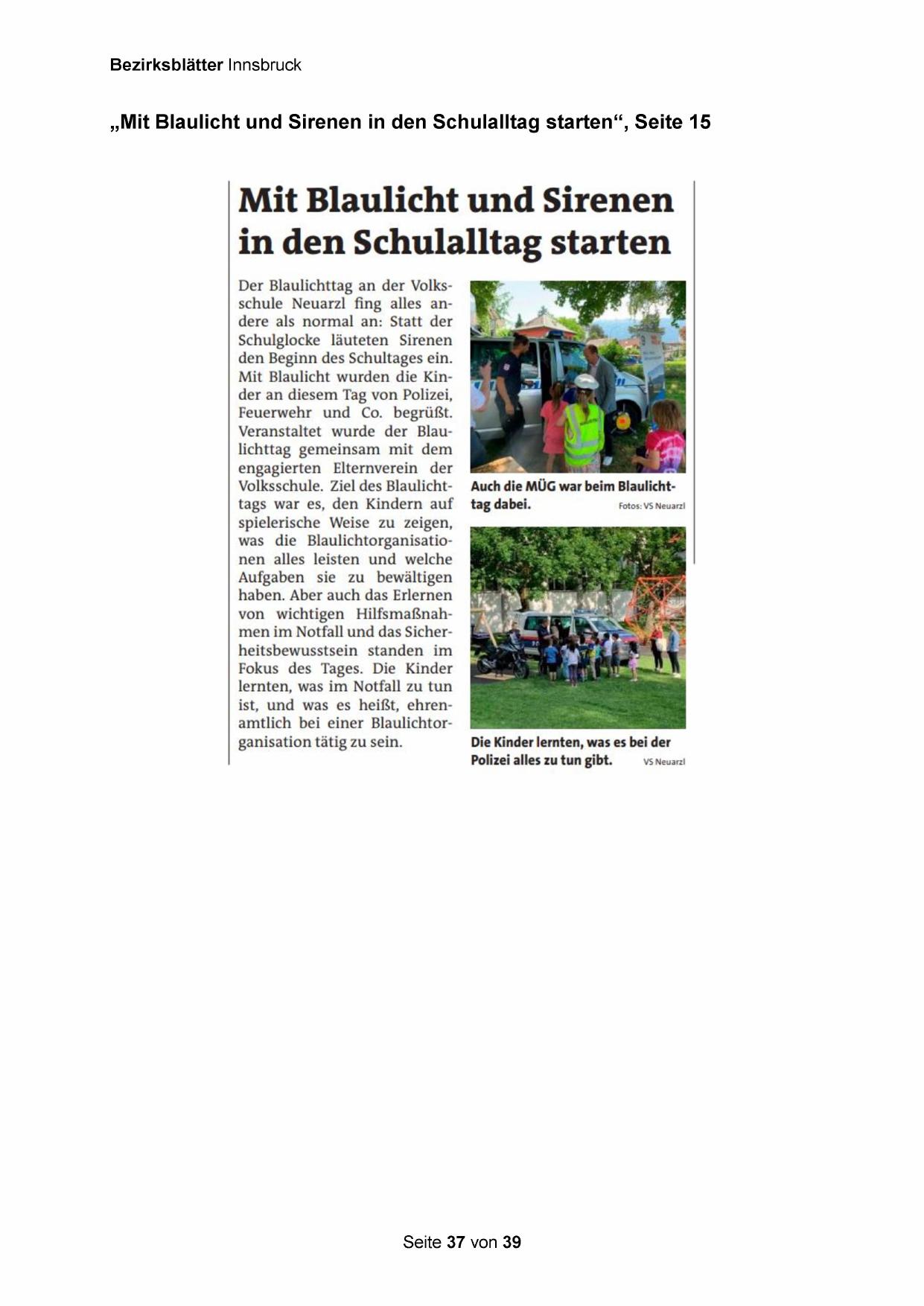 Volksschule. Ziel des Blaulicht- Auch die MÜG war beim Blaulichttags war es, den Kindern auf tag dabei. Fotos: VS Neuarz!