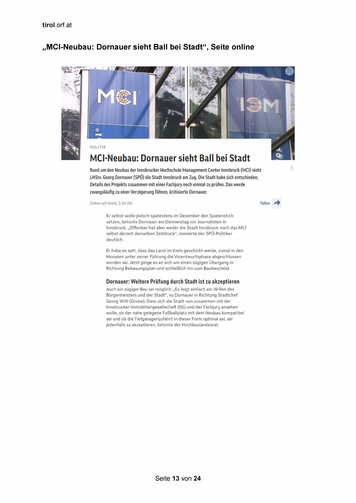 „MCI-Neubau: Dornauer sieht Ball bei Stadt‘“, Seite online