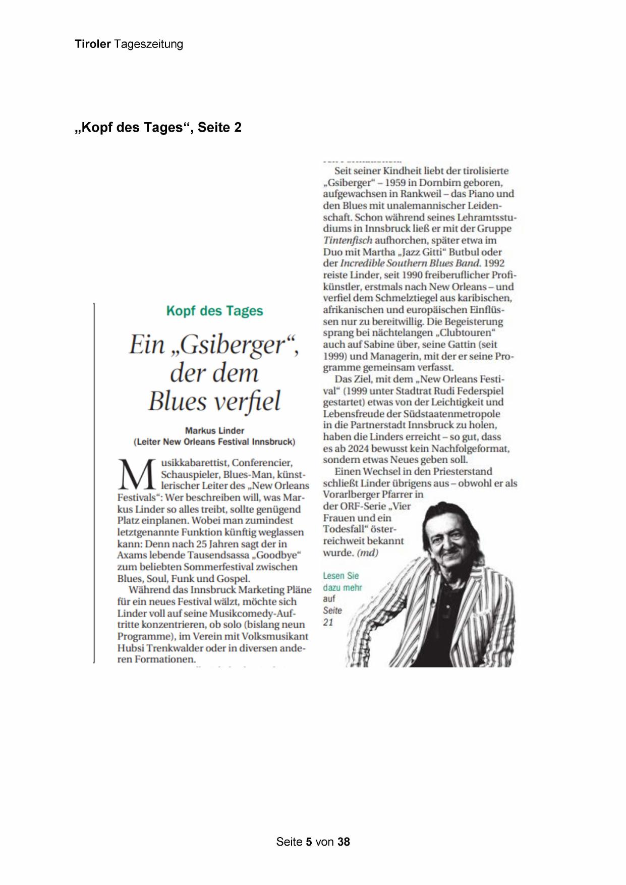 Festivals“: Wer beschreiben will, was Markus Linder so alles treibt, sollte genügend