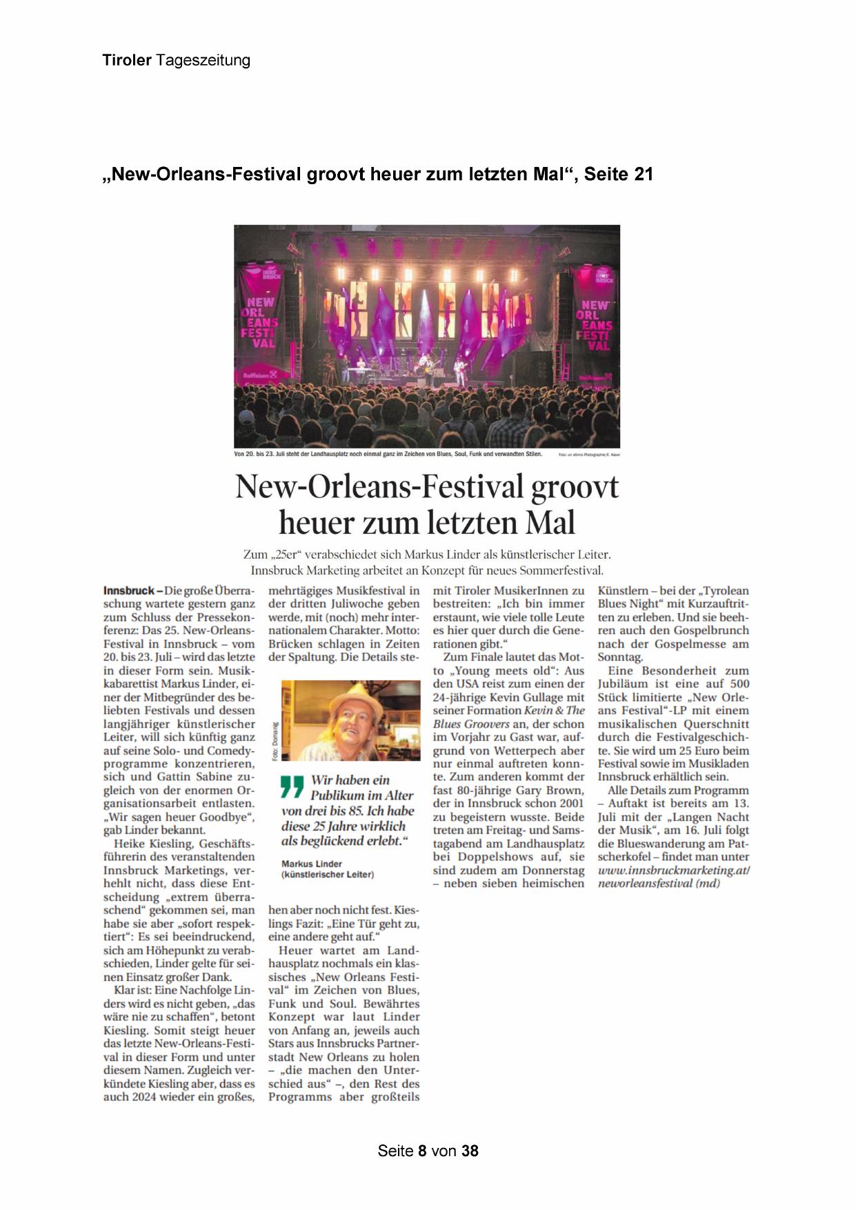 „New-Orleans-Festival groovt heuer zum letzten Mal“, Seite 21