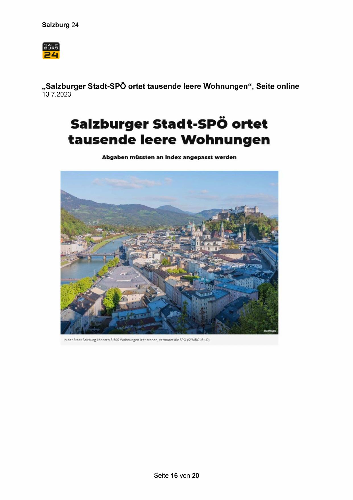 „Salzburger Stadt-SPÖ ortet tausende leere Wohnungen“, Seite online