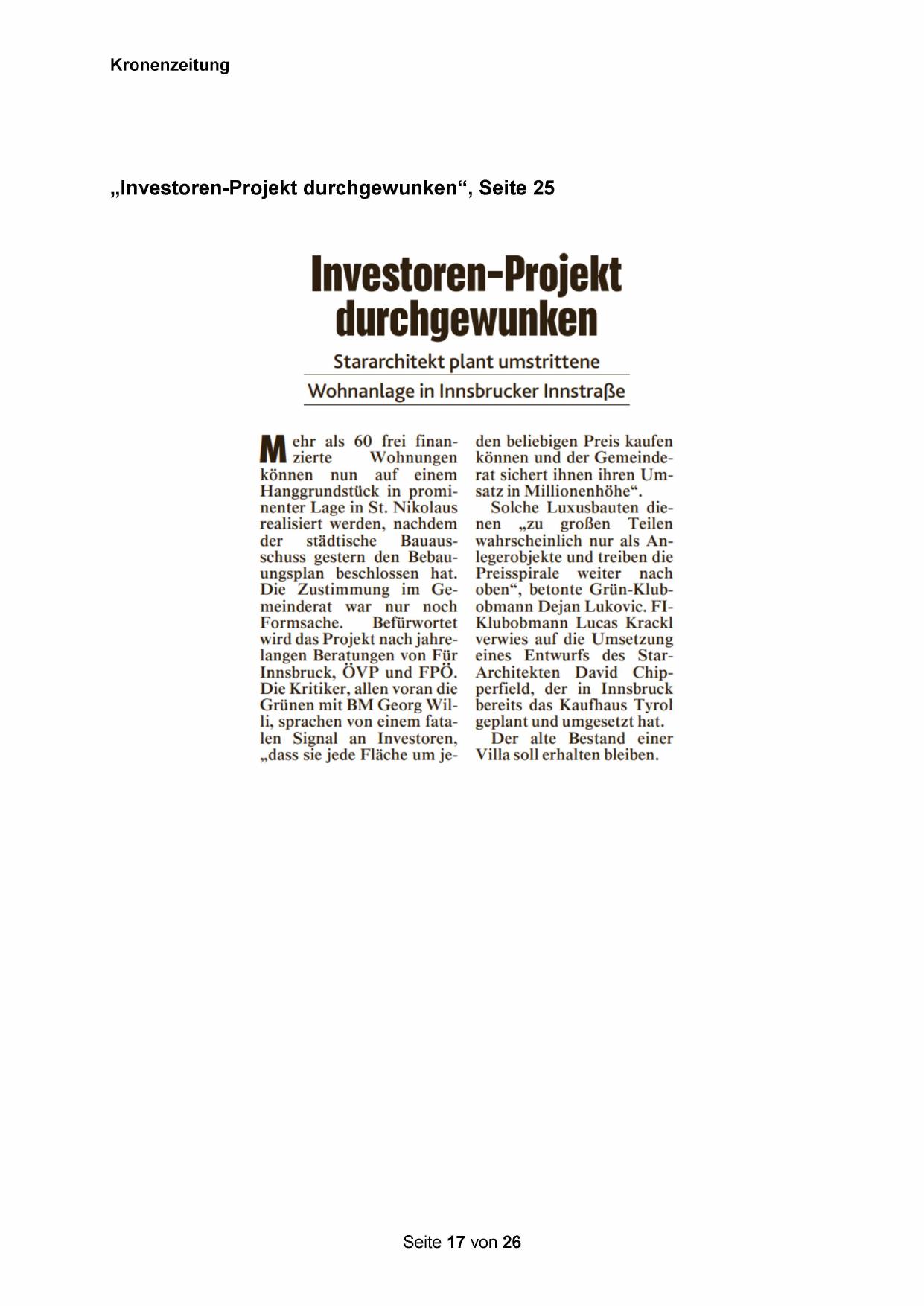 Grünen mit BM Georg Willi, sprachen von einem fatalen Signal an Investoren,
