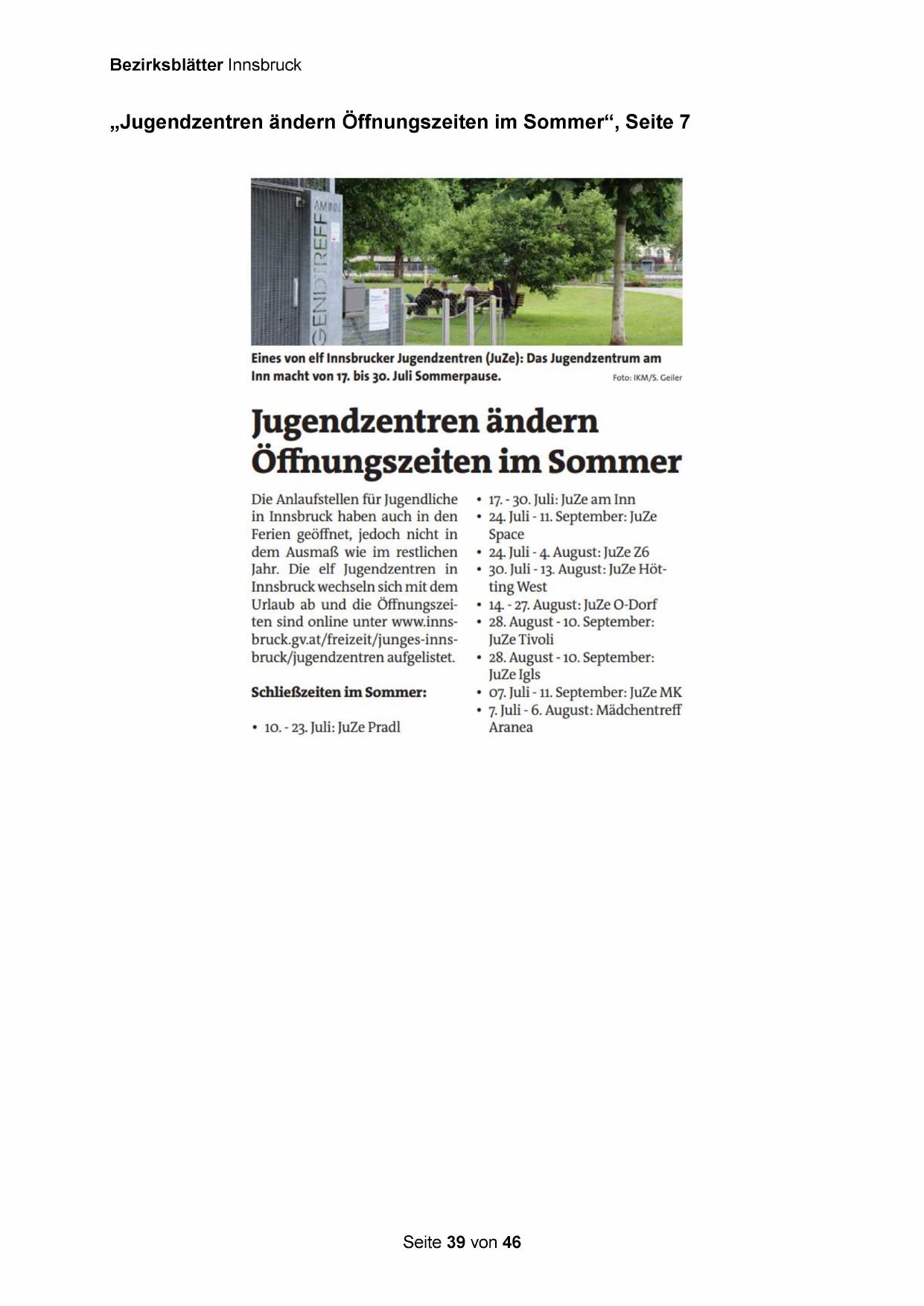 „Jugendzentren ändern Öffnungszeiten im Sommer“, Seite 7