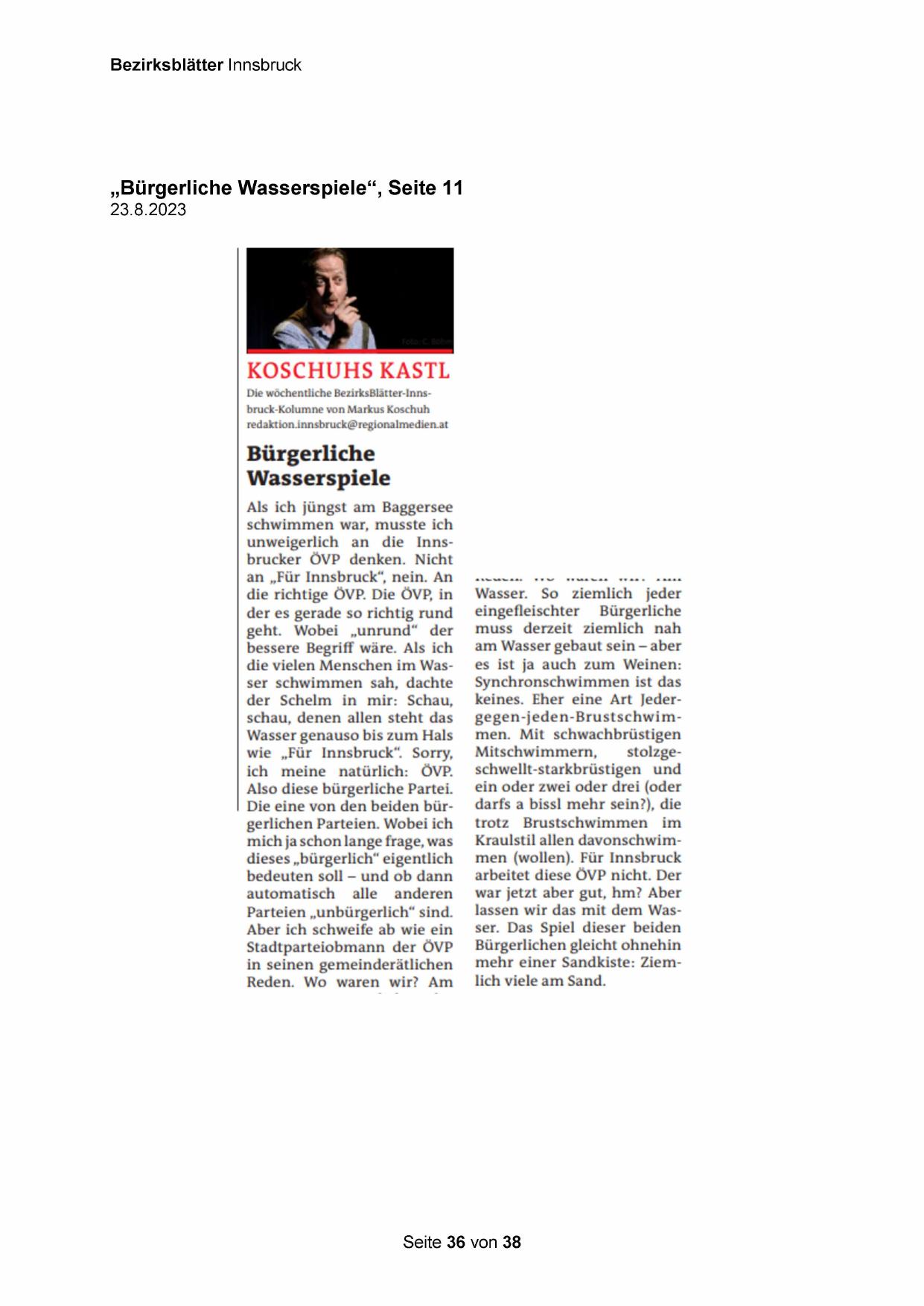 unweigerlich an die Innsbrucker ÖVP denken. Nicht
