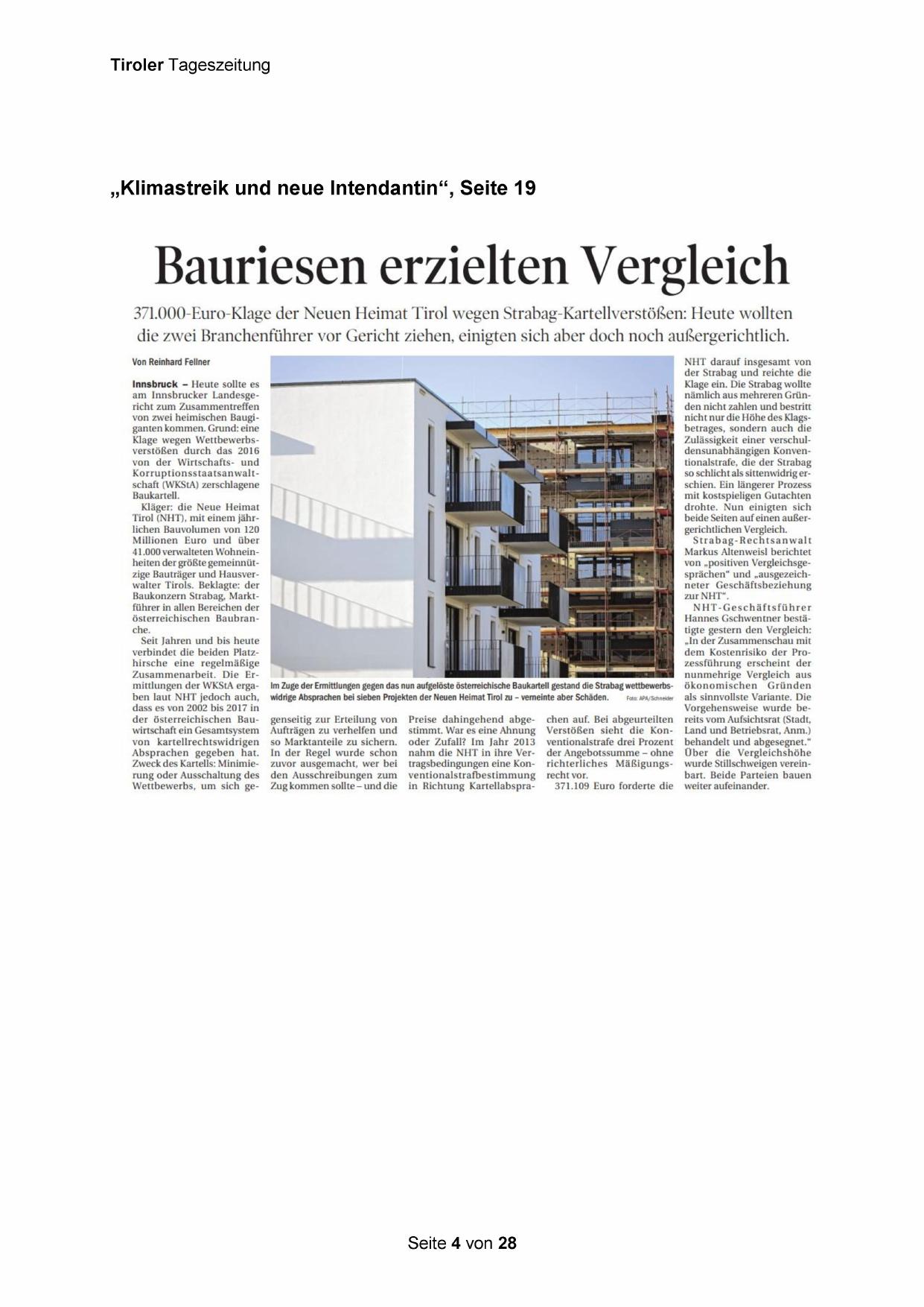 371.000-Euro-Klage der Neuen Heimat Tirol wegen Strabag-Kartellverstößen: Heute wollten