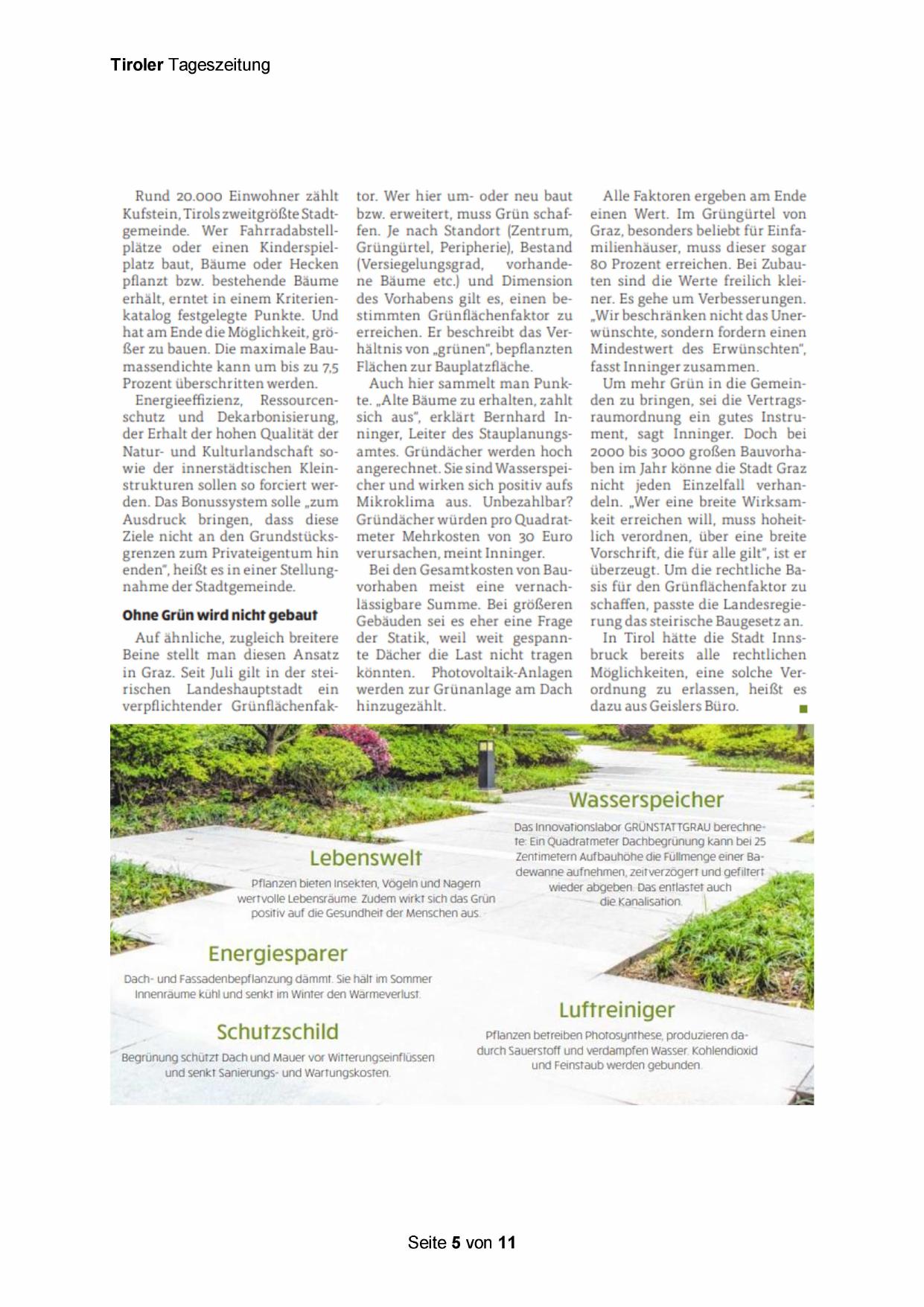 bzw. erweitert, muss Grün schaffen. Je nach Standort (Zentrum,