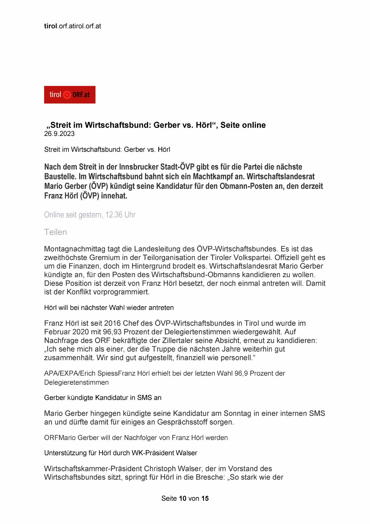 „Streit im Wirtschaftsbund: Gerber vs. Hörl“, Seite online