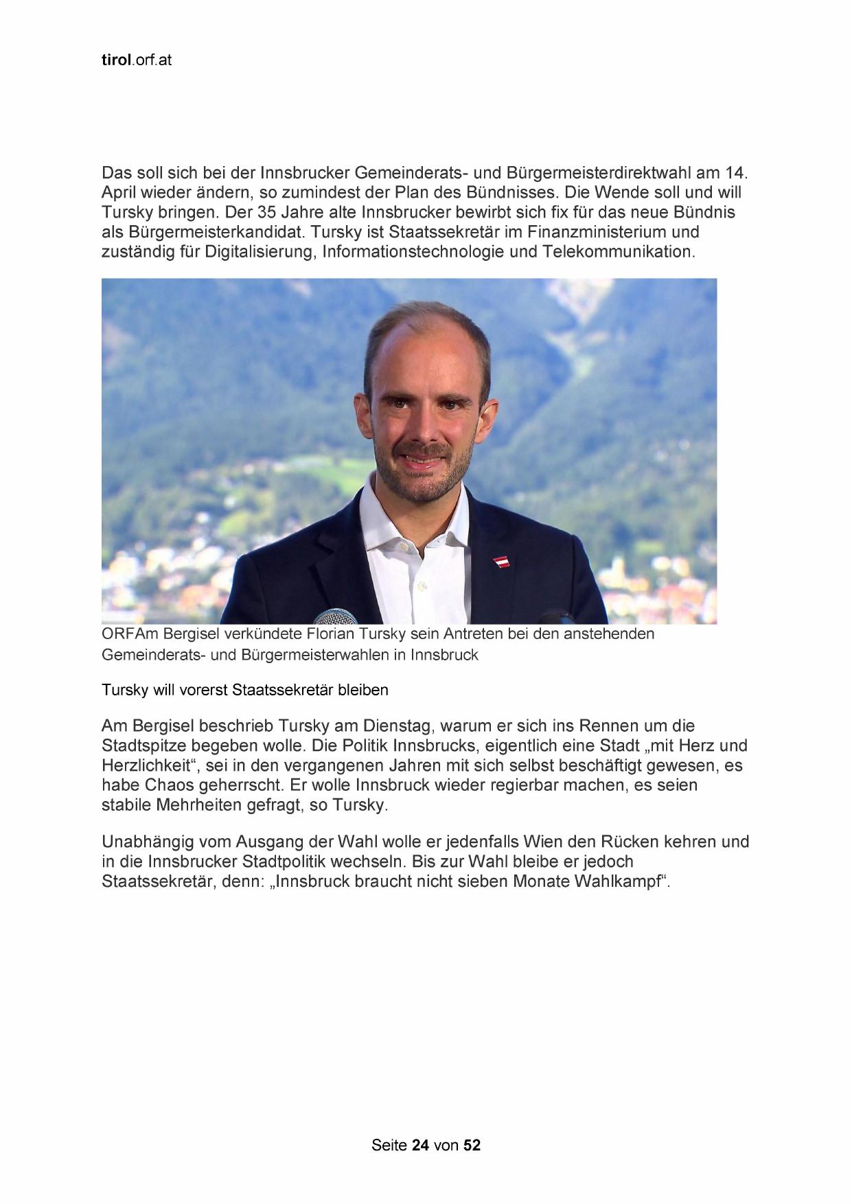 Tursky bringen. Der 35 Jahre alte Innsbrucker bewirbt sich fix für das neue Bündnis