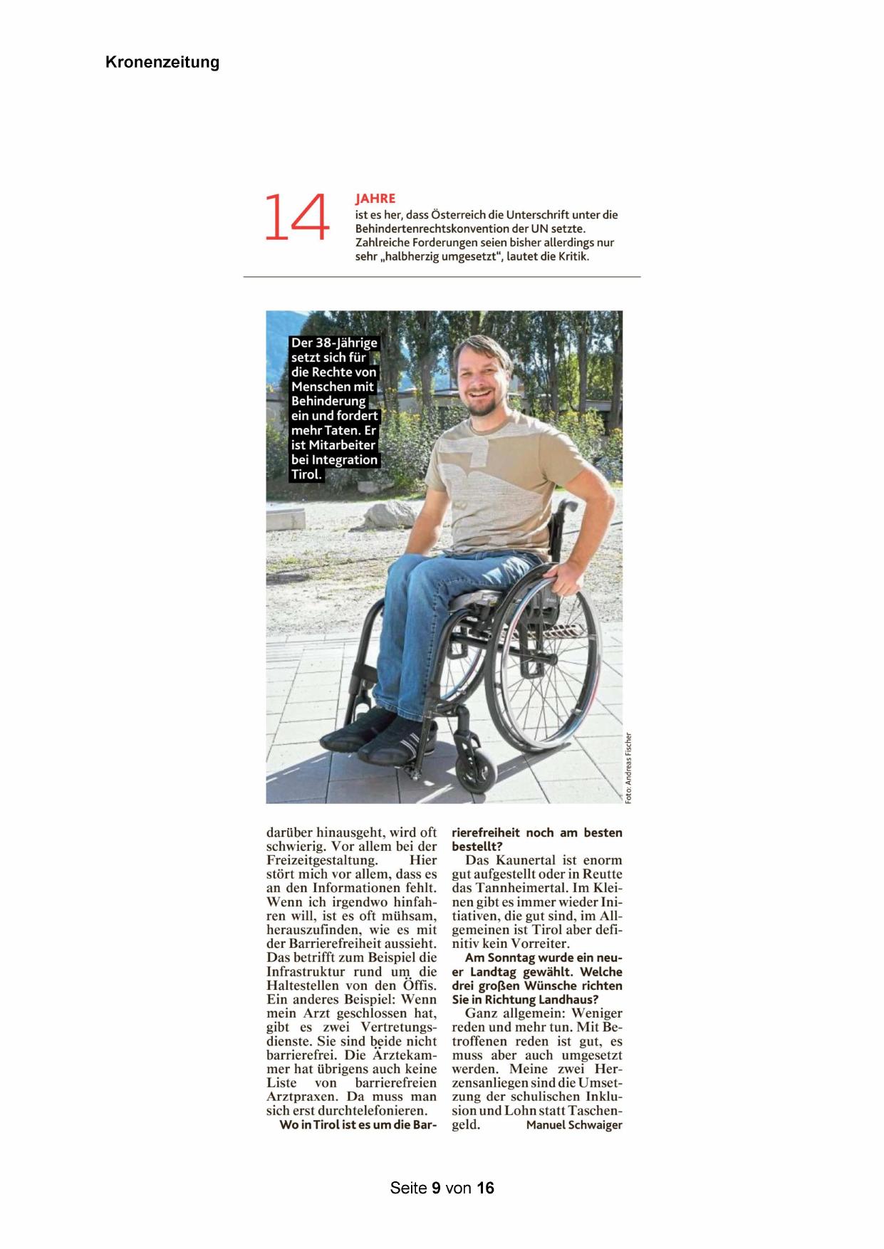 werden. Meine zwei Herzensanliegen sind die Umsetzung der schulischen Inklusion und Lohn statt Taschengeld. Manuel Schwaiger