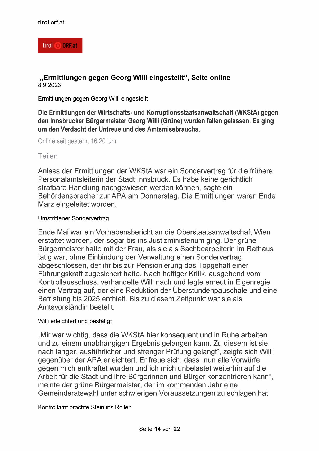 „Ermittlungen gegen Georg Willi eingestellt“, Seite online