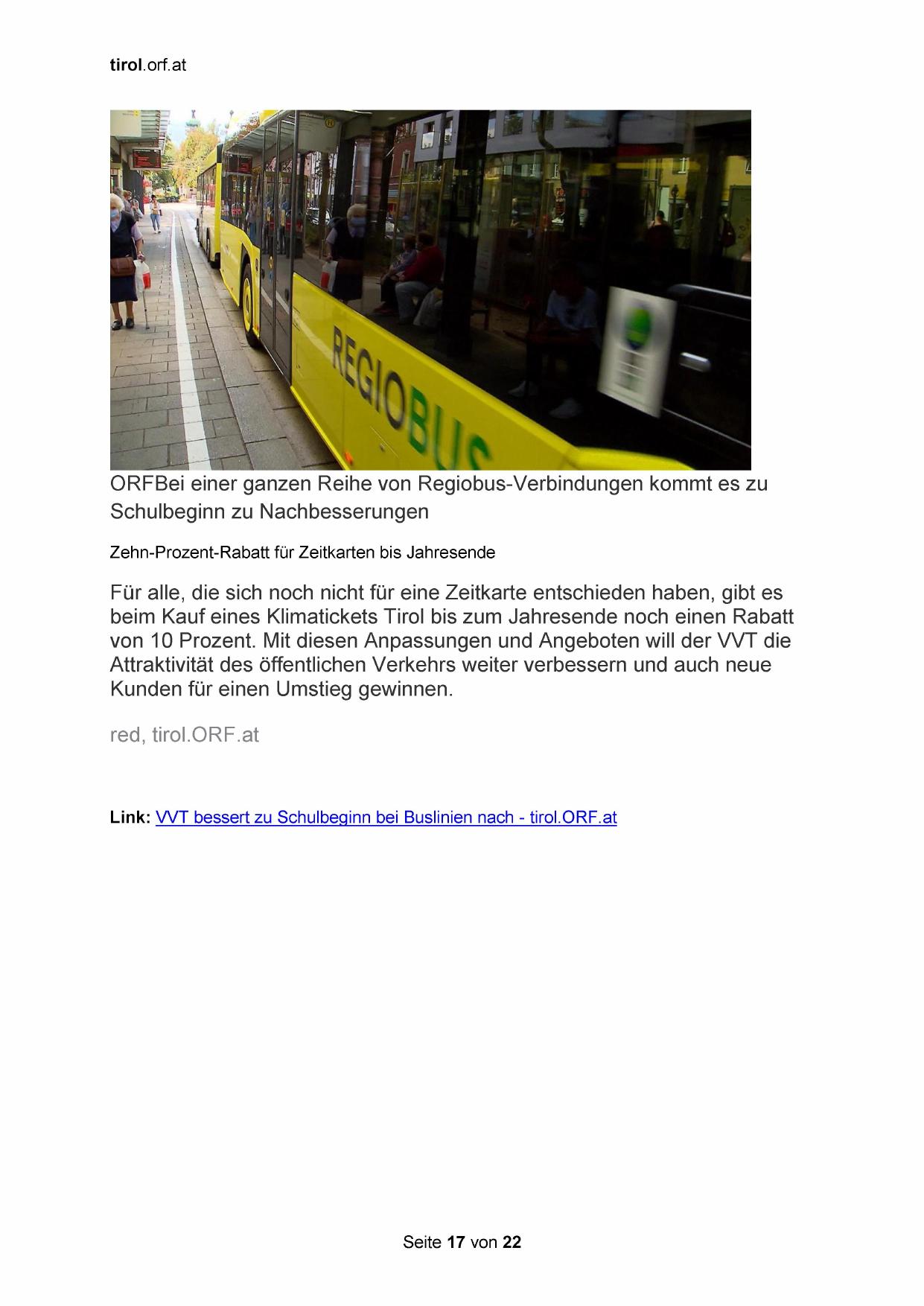 Link: VVT bessert zu Schulbeginn bei Buslinien nach - tirol.ORF.at