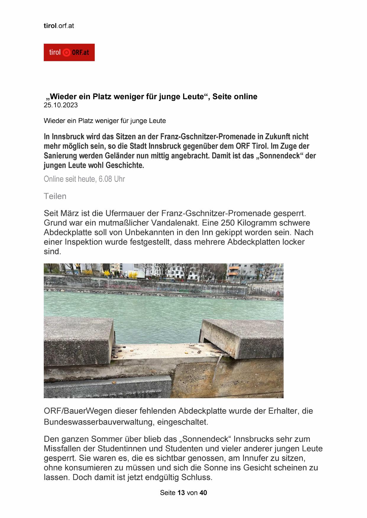 mehr möglich sein, so die Stadt Innsbruck gegenüber dem ORF Tirol. Im Zuge der