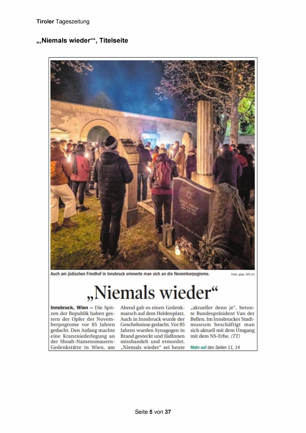 Innsbruck, Wien — Die Spitzen der Republik haben gestern der Opfer der Novemberpogrome vor 85 Jahren