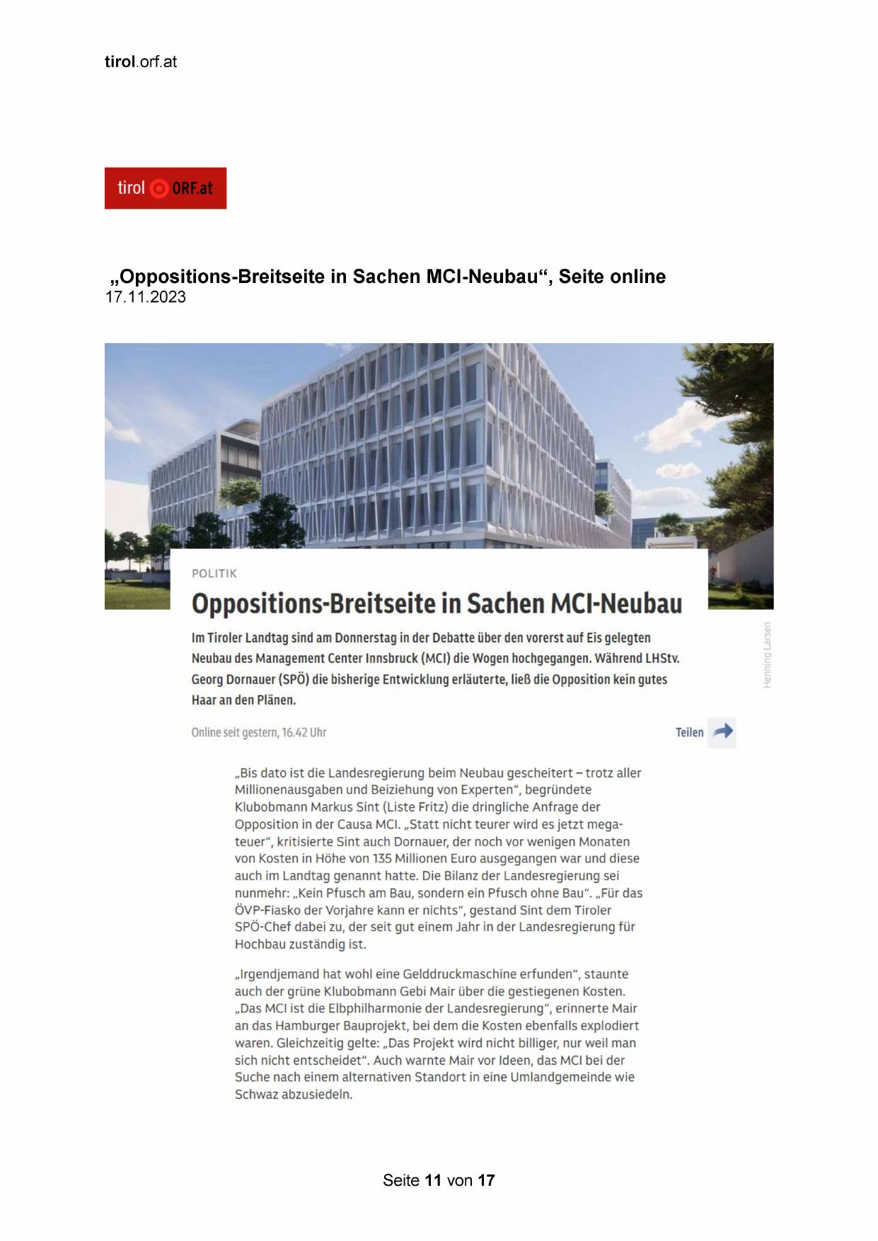 „Oppositions-Breitseite in Sachen MCI-Neubau“, Seite online