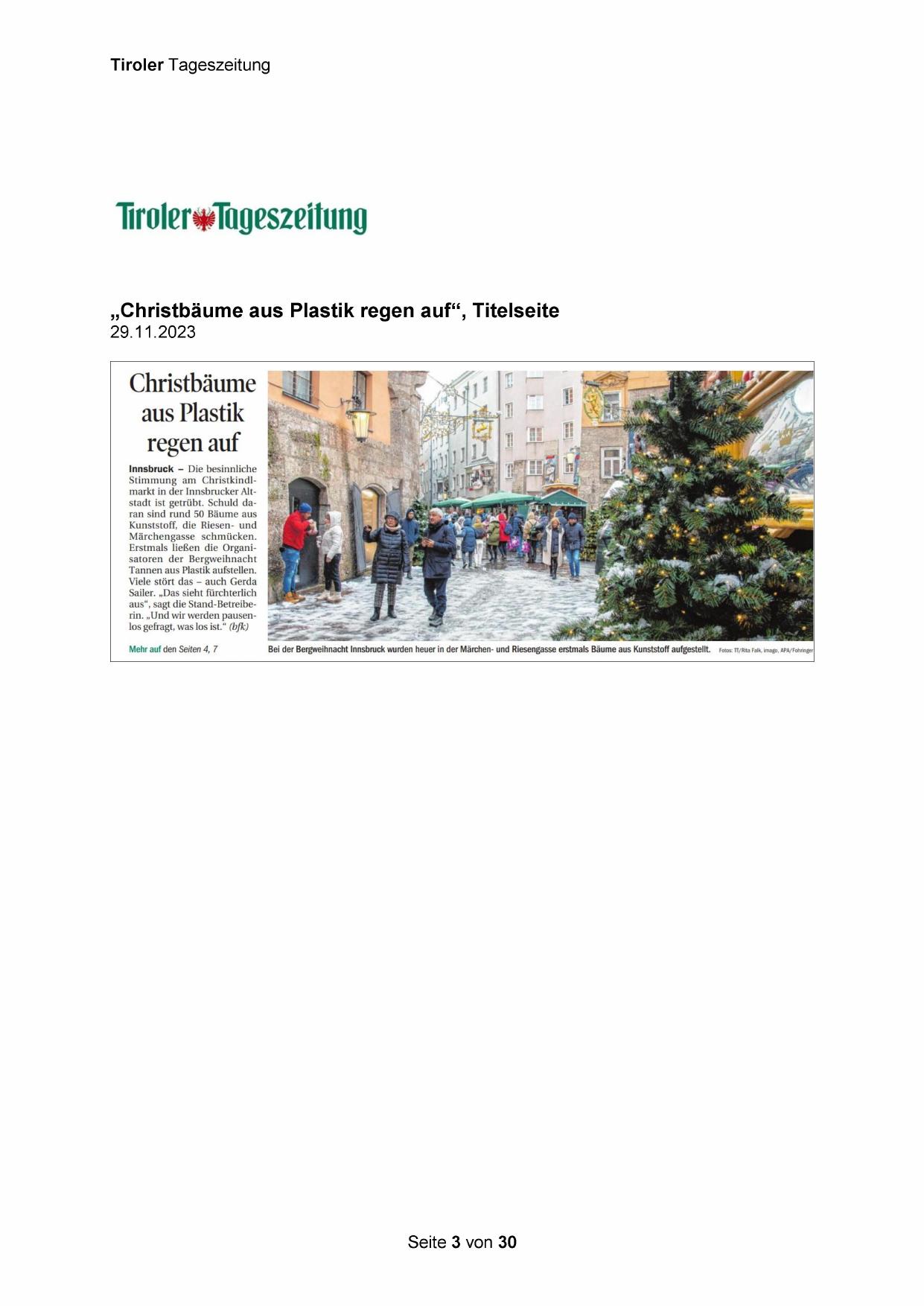 Bei der Bergweihnacht Innsbruck wurden heuer in der Märchen- und Riesengasse erstmals Bäume aus Kunststoff aufgestellt. Fotos: T/Rita Falk, imago, APA/Fohringer|