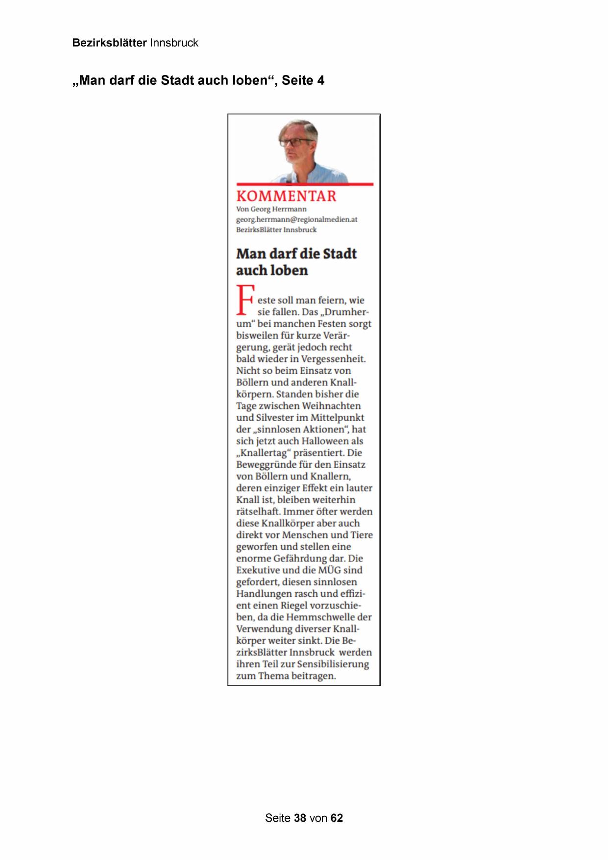Verwendung diverser Knallkörper weiter sinkt. Die BezirksBlätter Innsbruck werden